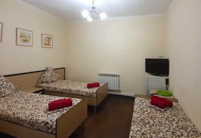 телевизор, Wi-Fi, кондиционер, фен, банные полотенца, тумбы, шкаф для одежды, зеркало, обслуживание номеров, унитаз, раковина, душ, три односпальные кровати, стаканы, мини-холодильник, без окна, номер для некурящих, пуфик, общественный бассейн, мыло, можно с питомцамиВ номере