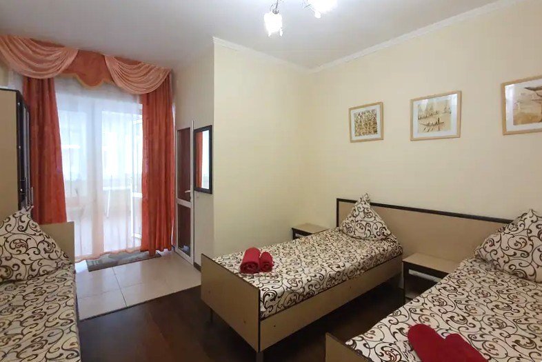Wi-Fi, кондиционер, банные полотенца, две односпальные кровати, тумбы, шкаф для одежды, журнальный столик, зеркало, обслуживание номеров, унитаз, раковина, душ, плиточное покрытие, стаканы, диван-кровать, телевизор с плоским экраном, мини-холодильник, без окна, номер для некурящих, пуфик, общественный бассейн, мыло, можно с питомцамиВ номере