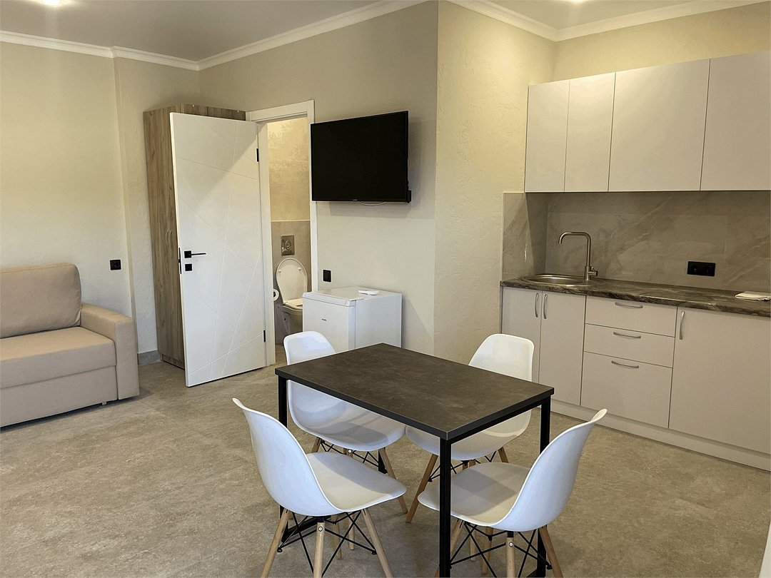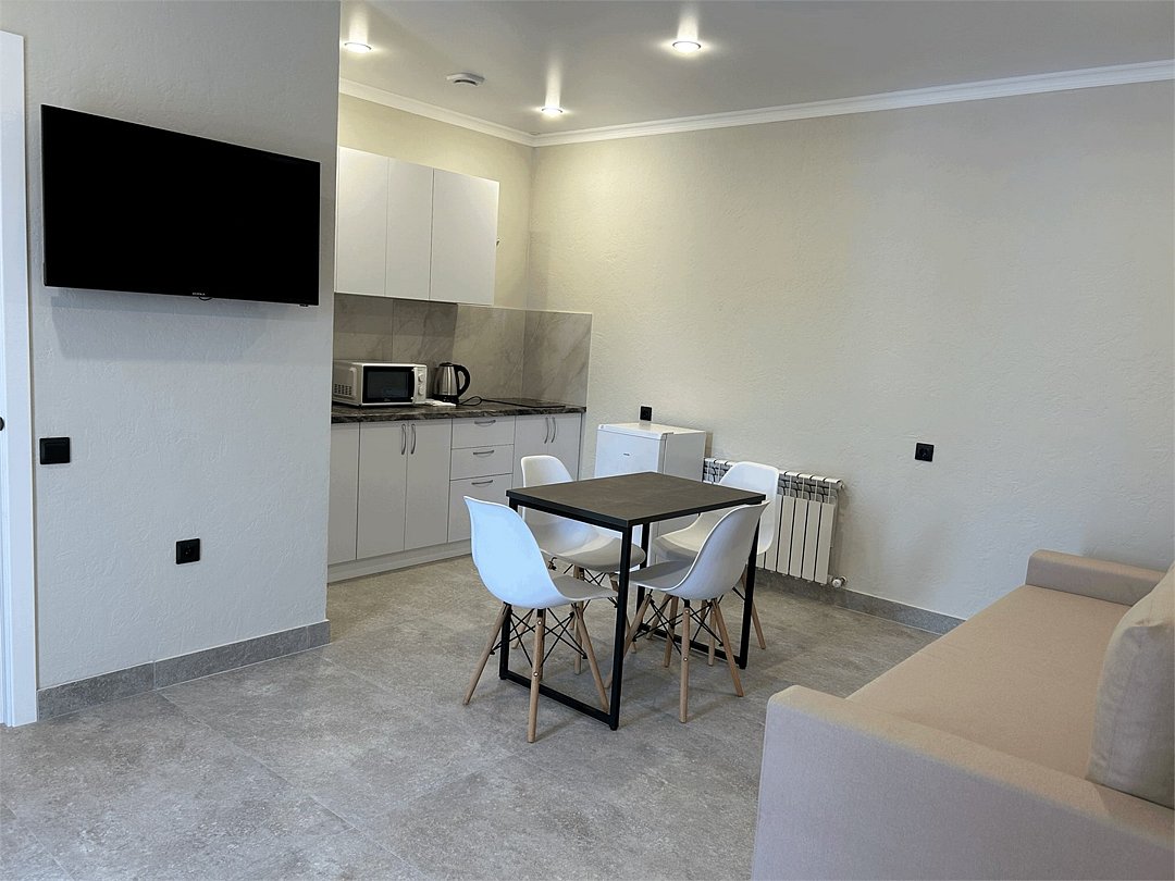 телевизор, Wi-Fi, холодильник, кондиционер, фен, микроволновая печь, утюг, душевая кабина, санузел, банные полотенца, двуспальная кровать, односпальная кровать, диван, шкаф для одежды, обеденный стол, чайник, унитаз, душ, вид во двор, кухонная посуда, стул, стол, диван-кровать, раскладной диван, вид на горы, вид на бассейн, услуги прачечной (платно), вешалки-плечики, мылоВ студии