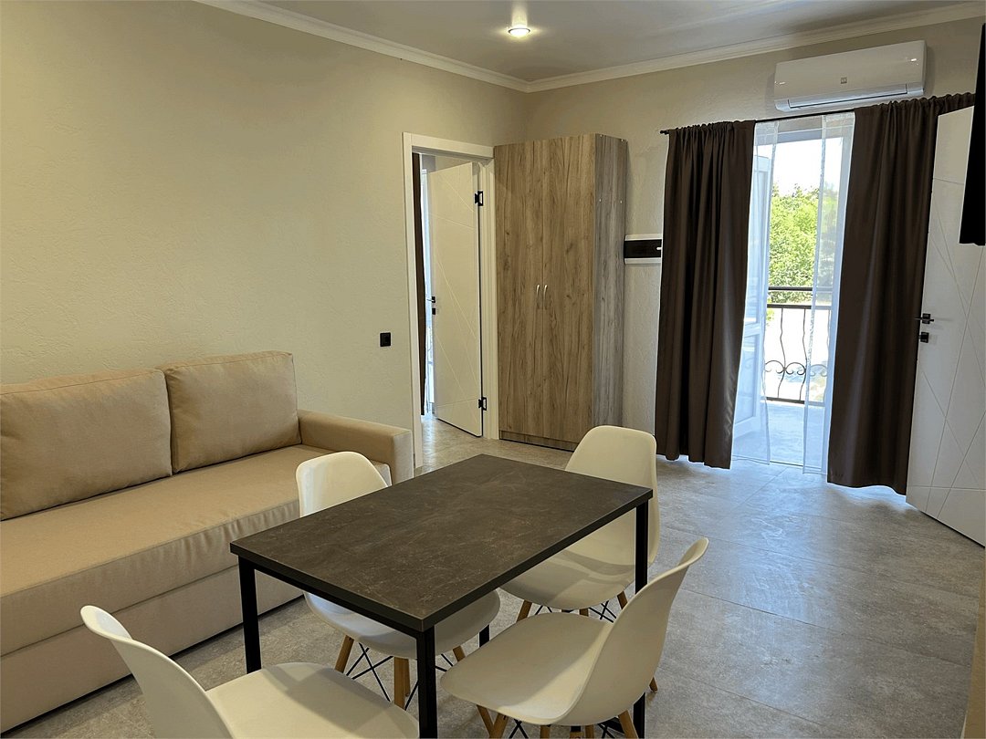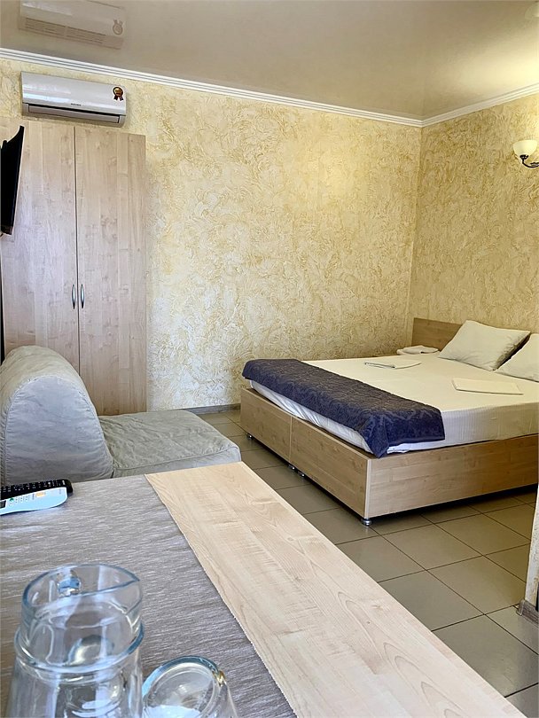 телевизор, Wi-Fi, холодильник, кондиционер, фен, плита для приготовления пищи, микроволновая печь, утюг, душевая кабина, банные полотенца, балкон, двуспальная кровать, односпальная кровать, гладильная доска, стулья, шкаф для одежды, обеденный стол, чайник, унитаз, мягкая мебель, душ, вид во двор, стаканы, столовые приборы, стул, стол, туалет, сушилка для белья, диван-кровать, раскладной диван, мини-холодильник, вид на горы, вид на бассейн, вешалки-плечики, мылоВ номере