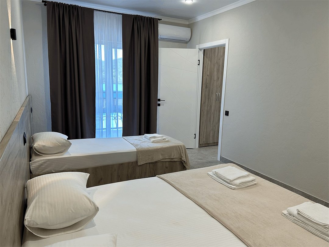 Четырехместный номер с раскладным диваномИли нужно забронировать сразу несколько номеров? Вы можете оставить письменную заявку и мы поможем составить бронирование на основе Ваших особых пожеланий.