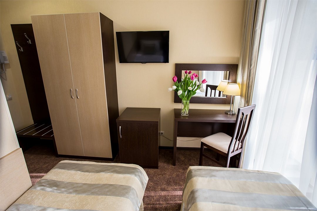 Wi-Fi, интернет, кондиционер, настольные лампы, фен, электронные замки, утюг, банные полотенца, пляжные полотенца, тапочки, две односпальные или большая двуспальная кровать, ортопедический матрас, детская кровать, тумбы, шкаф для одежды, журнальный столик, письменный стол, багажная тумба, зеркало, чайный набор, обслуживание номеров, сейф, чайник, унитаз, раковина, ковровое покрытие, отопление, душ, стаканы, стул, тумба, туалетные средства, диван-кровать, раскладной диван, внутренний телефон, телевизор с плоским экраном, мини-холодильник, москитная сетка, гостиничная парфюмерия, без окна, номер для некурящих, вид на лес, антибактериальное средство для рукВ номере