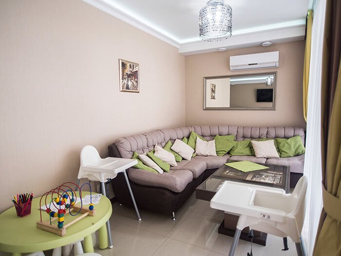 Wi-Fi, интернет, кондиционер, светильник, настольные лампы, фен, электронные замки, утюг, банные полотенца, пляжные полотенца, тапочки, балкон, две односпальные или большая двуспальная кровать, ортопедический матрас, детская кровать, тумбы, шкаф для одежды, журнальный столик, письменный стол, багажная тумба, зеркало, унитаз, раковина, душ, вид во двор, стул, тумба, туалетные средства, диван-кровать, раскладной диван, внутренний телефон, телевизор с плоским экраном, вид на горыВ номере