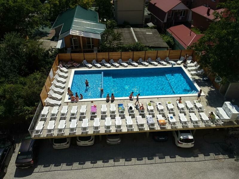 К услугам отеля относятся - мангальная зона, площадки для отдыха, открытый бассейн с шезлонгами, игровая комната с детской анимацией. Питание организовано в столовой за дополнительную плату, либо можно воспользоваться общей кухней и готовить самостоятельно.