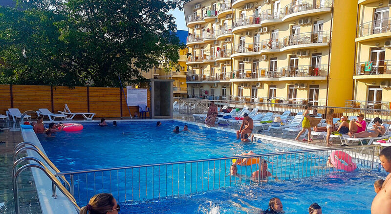 Семейный отдыхДостоинстваОтличный отель со свежим ремонтом. Коллектив хороший, идет навстречу гостям. Есть свой бассейн и шикарная площадка для детей. До центральной улицы всего две минуты пешком. До пляжа пять.
