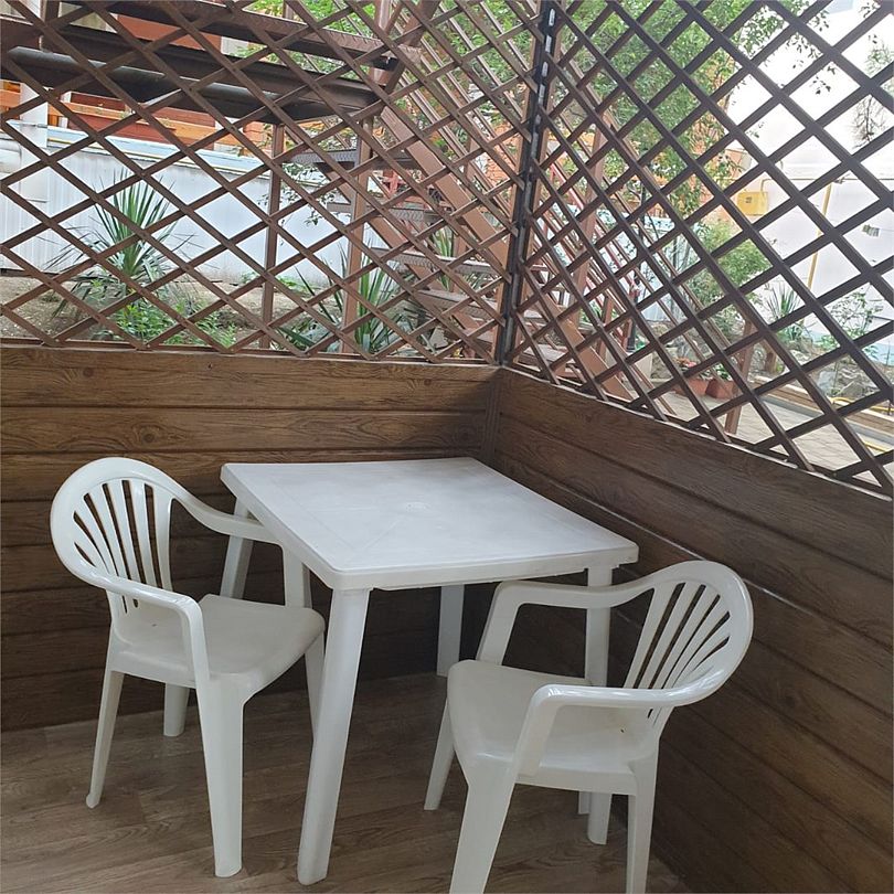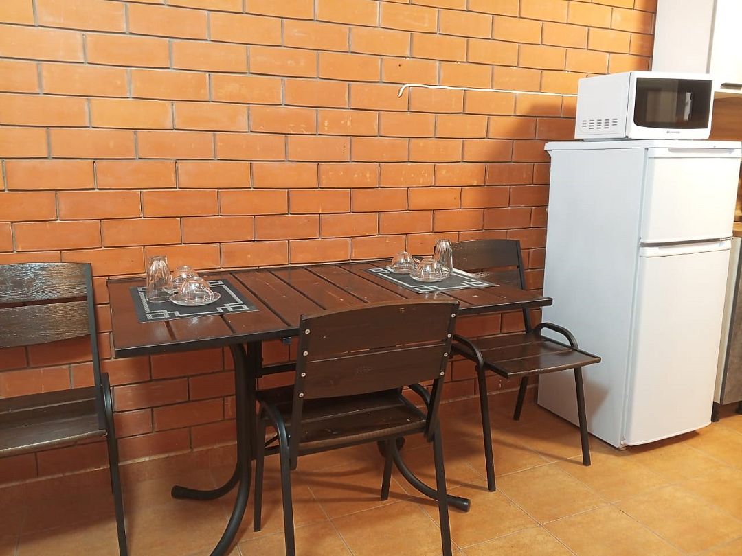 В распоряжении гостей общая кухня, оборудованная газовыми плитами, микроволновками и холодильником. Во дворе мангал для приготовления пищи на открытом огне. В стандартном 2-местном номере есть удобная кровать, шкаф для одежды, в каждом – Wi-Fi, кондиционер и телевизор. На территории установлена детская площадка. Неподалеку находится бассейн. В осенне-весенний период дом отапливается. Закрытый внутренний двор гостевого дома накрыт шатром из ветвей пицундской сосны. Хвойный аромат создает особый уют, спасает от летнего зноя.