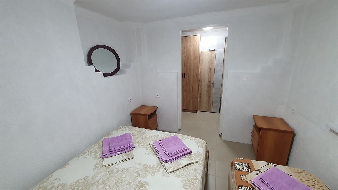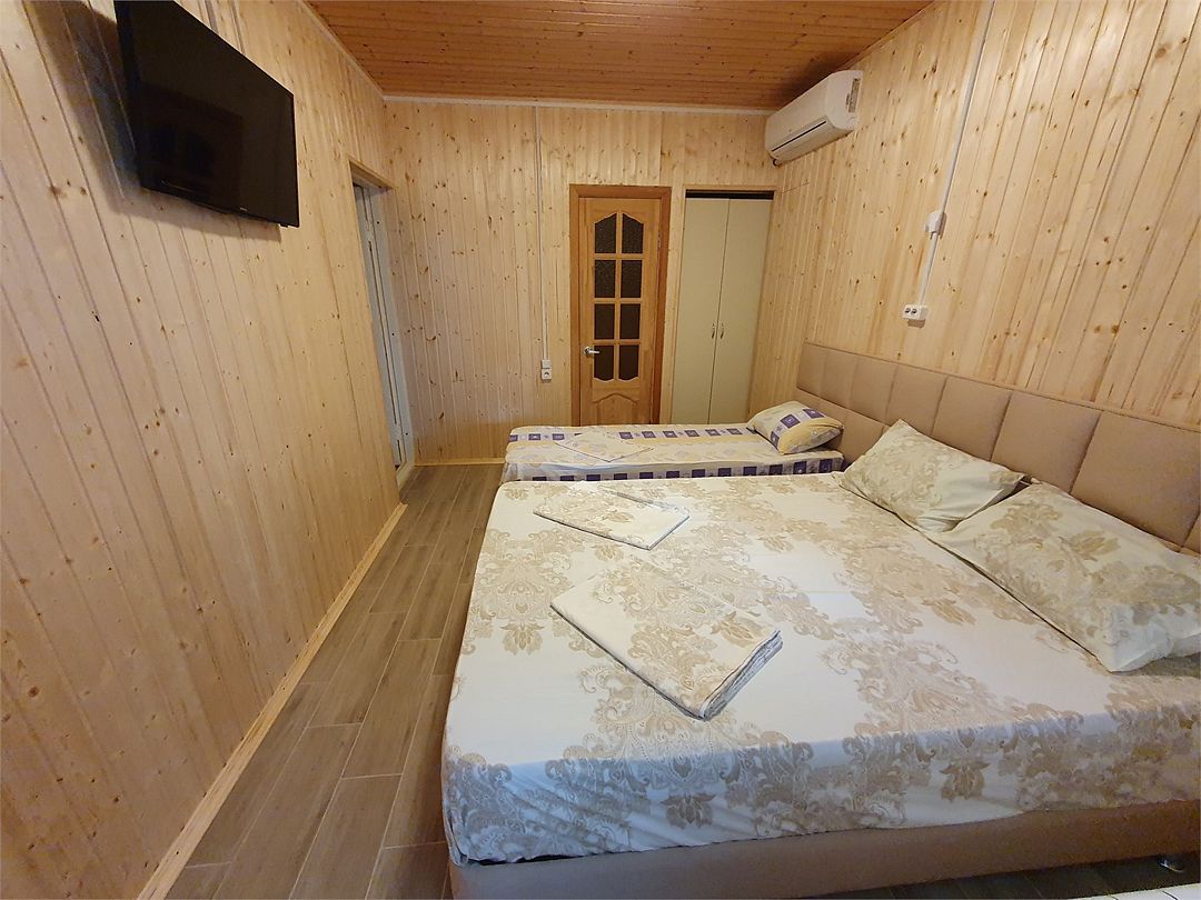 Номер состоит из двух комнат. В одной из комнат расположена кухня с холодильником, электроплитой, микроволновкой, кухонная утварь и посуда. Во второй комнате односпальная кровать и двуспальная кровать. Туалет и душ в номере. Кондиционеры в каждой комнате. Шкаф, стол, стулья. При заселении удерживается залог размере 5000 рублей (возвратные деньги). Допускается проживание с собачками от 5 до 8 кг., по предварительному согласованию с администрацией. Оплата за питомца составляет 1000 рублей сутки. Залоговая сумма при проживании с животным увеличивается до 10000 рублей. В случае приезда с питомцем без предварительного согласования и уведомления, администрация имеет право отказать в заселении. Просим вас внимательно отнестись к этому вопросу.Услуги и удобства