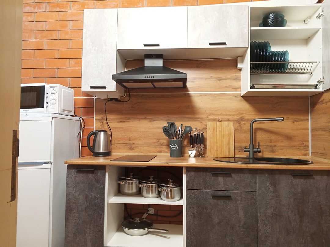 телевизор, Wi-Fi, холодильник, кондиционер, вентилятор, утюг, банные полотенца, две односпальные или большая двуспальная кровать, тумбы, стулья, шкаф для одежды, зеркало, две комнаты, звуконепроницаемые стены и окна, набор посуды, стиральная машина, чайник, отопление, отдельный вход в номер, душ, плиточное покрытие, вид во двор, кухонная посуда, кухонная утварь, тумба, сплит-система, сушилка для белья, диван-кровать, телевизор с плоским экраном, мини-холодильник, мини-кухня, антибактериальное средство для рук, можно с питомцамиВ гостиничном номере