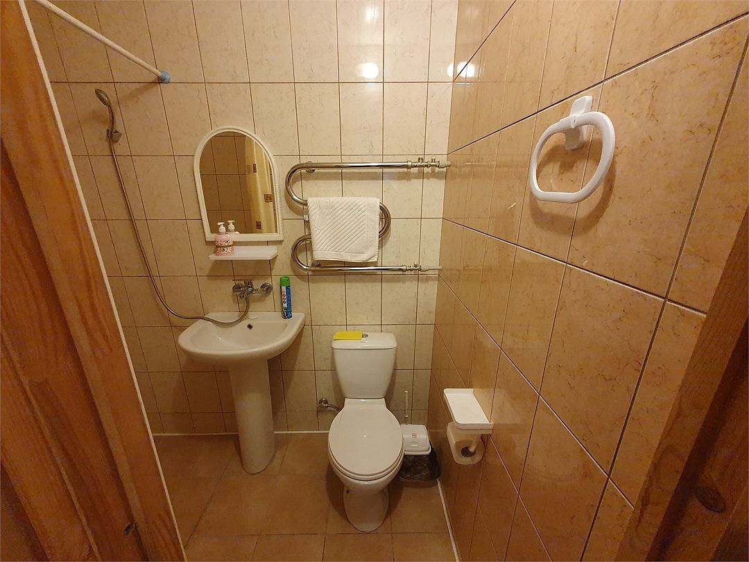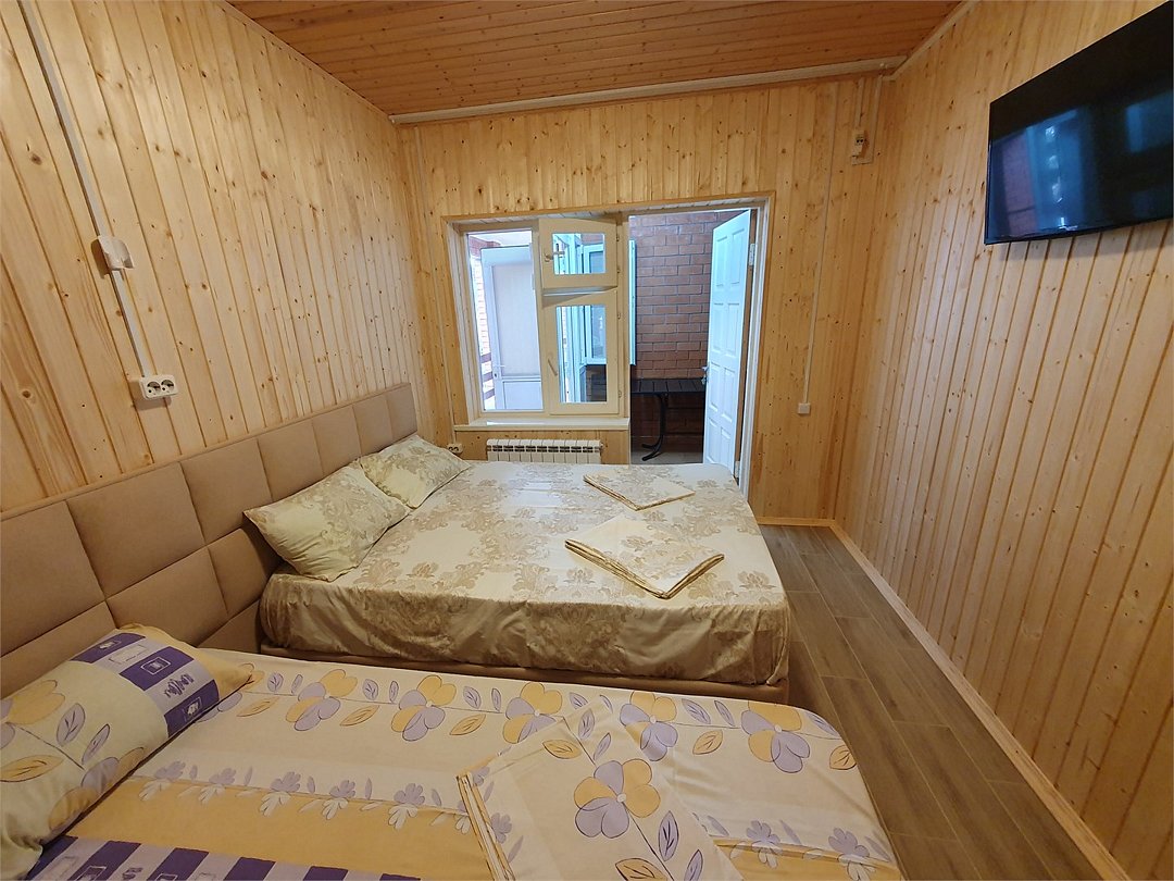 В номере: холодильник, телевизор, кондиционер, электрочайник, совмещенные душ и туалет, двуспальная кровать, прикроватные тумбы, стол и стулья. При заселении удерживается залог размере 5000 рублей (возвратные деньги). Допускается проживание с собачками от 5 до 8 кг., по предварительному согласованию с администрацией. Оплата за питомца составляет 1000 рублей сутки. Залоговая сумма при проживании с животным увеличивается до 10000 рублей. В случае приезда с питомцем без предварительного согласования и уведомления, администрация имеет право отказать в заселении.Услуги и удобства