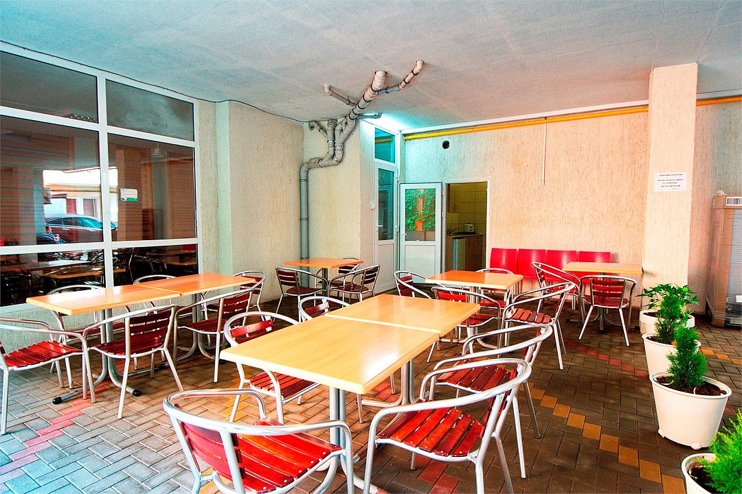 1. Гостиница удобно расположена на центральной улице Ленина, до моря метров 300 (центральный пляж), мы же ходили на пляж рядом с военным санаторием, до него метров 600. В шаговой доступности всевозможные магазинчики, кафешки (до кафе Курортное метров 150-200), магазин Магнит. В самом здании винный магазинчик и продажа шашлыка, курицы, шаурмы. Далеко никуда ходить не надо.
