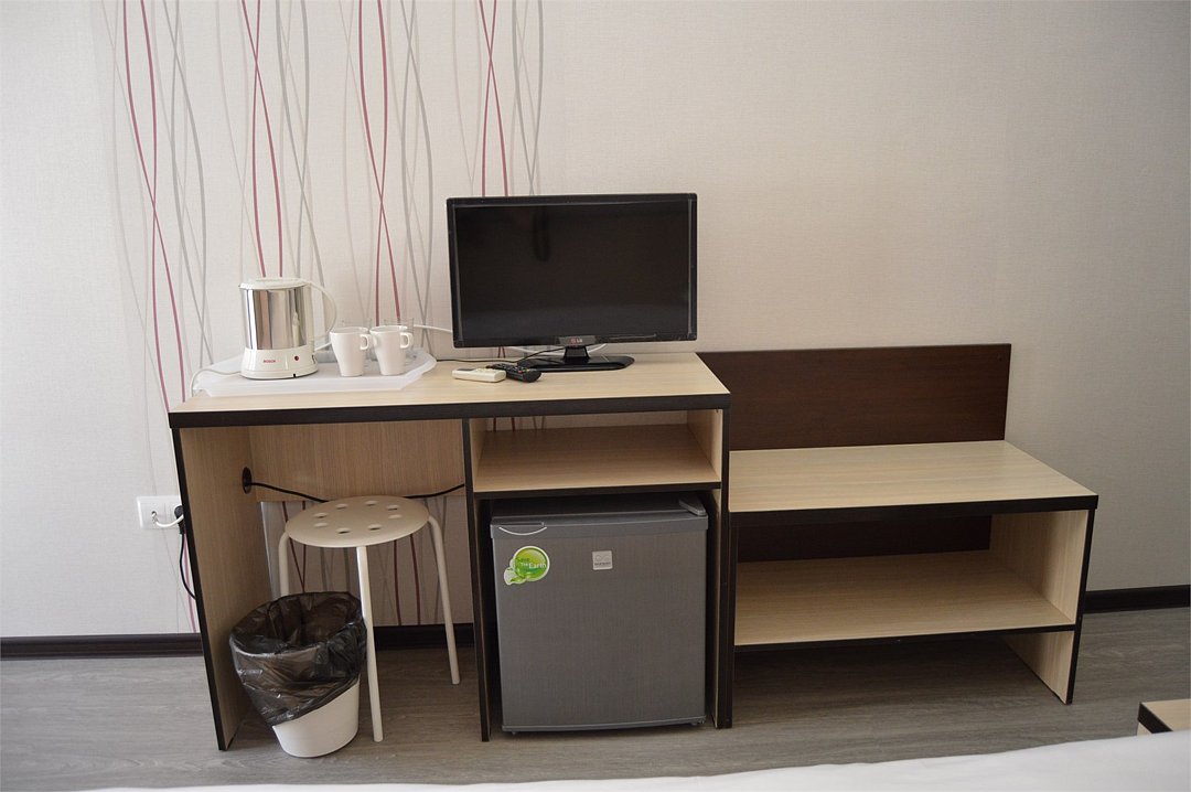 Номера оборудованы ванными комнатами с круглосуточным горячим и холодным водоснабжением, комфортабельной мебелью и современной техникой (кондиционеры, холодильники, телевизоры, электрочайники). К услугам гостей – парикмахерская (на нижнем этаже отеля), прачечная, банкомат, автостоянка и бесплатный WI-FI.