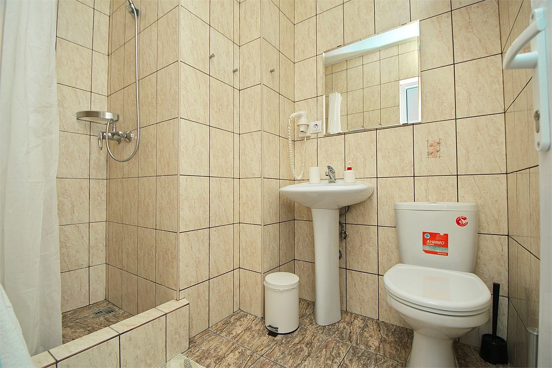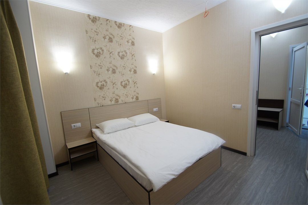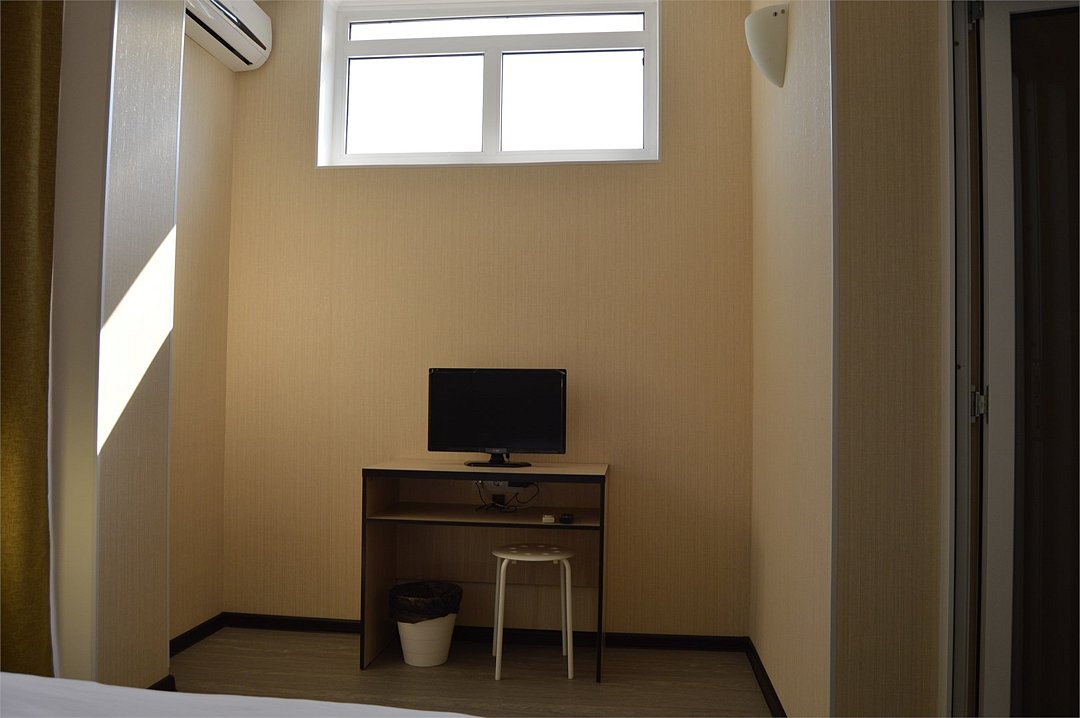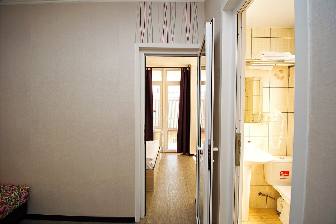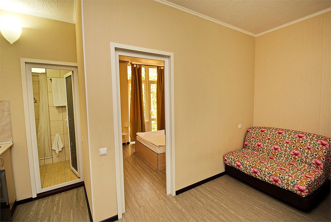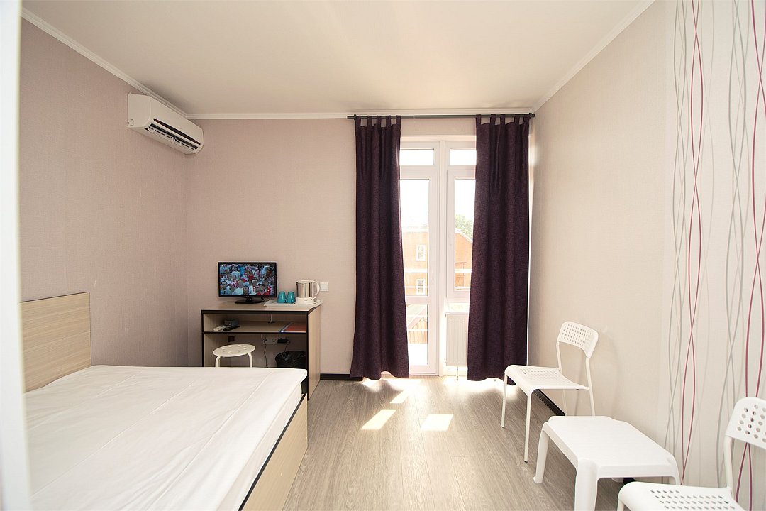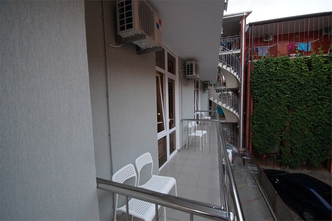 Стандартный 2-х местный номер. В номере большая двуспальная кровать (1,6м*2м) и раскладной диван-кровать (1,4м*1.9м). Также есть общий балкон на этаже на 3 номера. В номере есть все необходимое для комфортного проживания: С\у с душевой, раковиной и унитазом, сплит-система, мини-холодильник, ТВ на 20 каналов, прикроватная тумба, прикроватный светильник, шкаф, журнальный столик, чайник, полотенца, мыльные принадлежности.Услуги и удобства