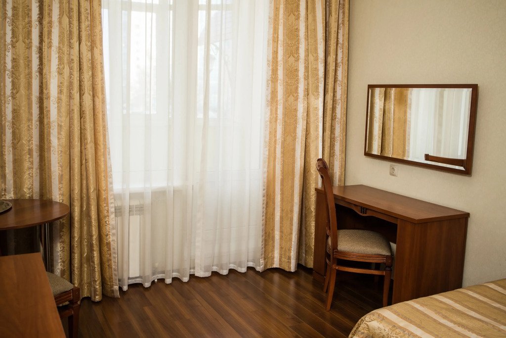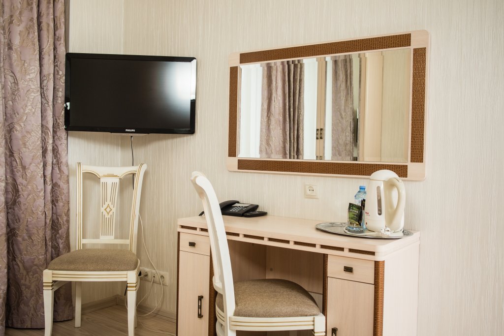 Номер уютно обставлен и оснащён необходимым, чтобы отдохнуть после долгого и насыщенного дня. Имеются телевизор. Оснащение зависит от выбранной категории номера.