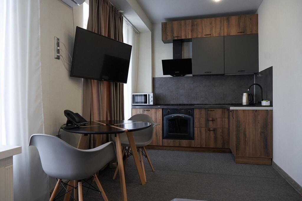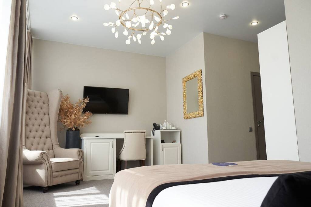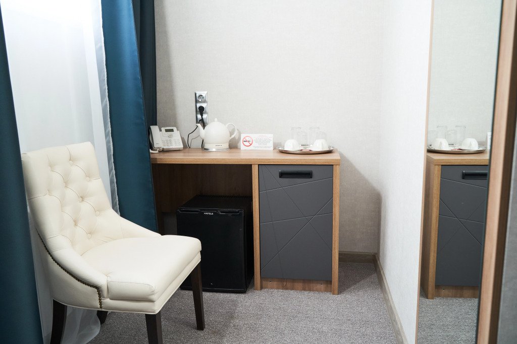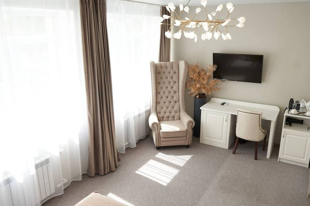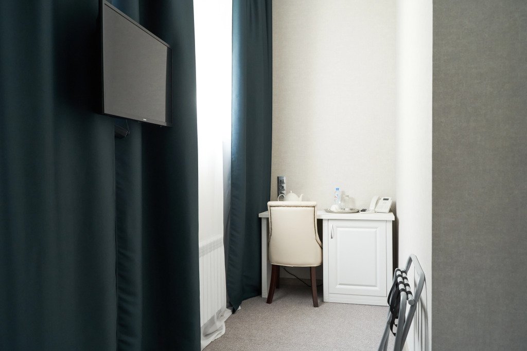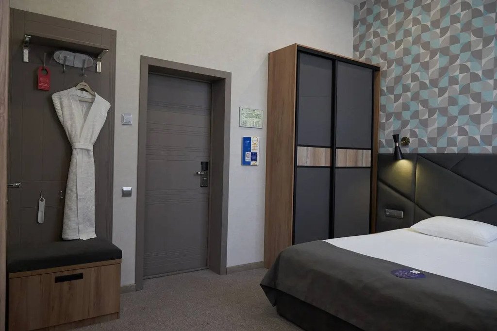 В номере вас будут ждать телевизор, халат и тапочки. Оснащение зависит от выбранной категории номера.