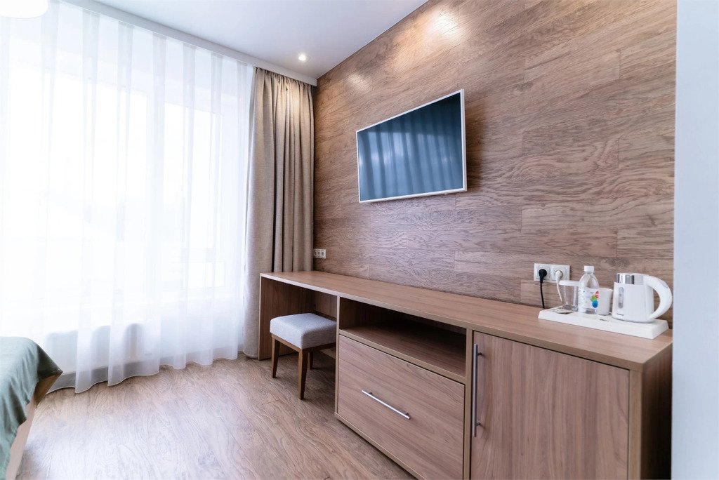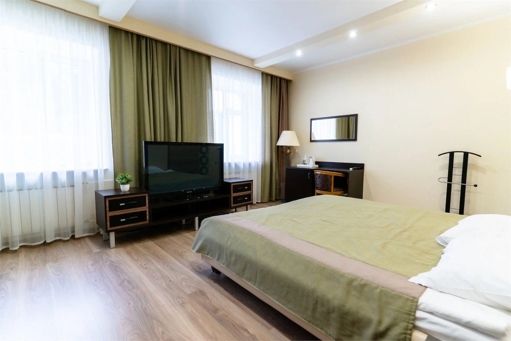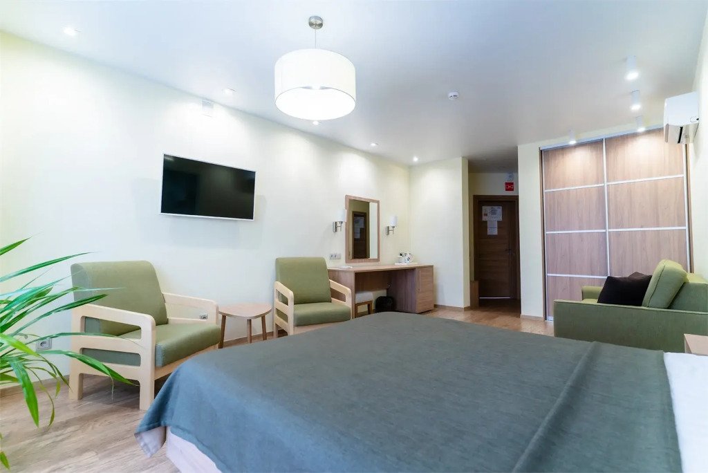 В номере гостей ждут телевизор и халат. Перечисленные услуги есть не во всех номерах.