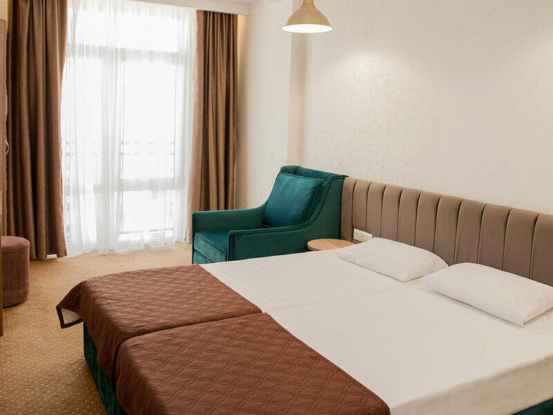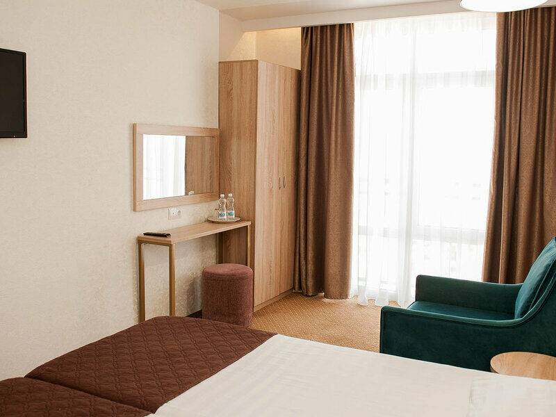 К услугам гостей - 77 уютных, светлых, просторных номеров с современным дизайном располагаются в четырёхэтажном корпусе с лифтом. Размещение в номерах возможно от одного до пяти человек.