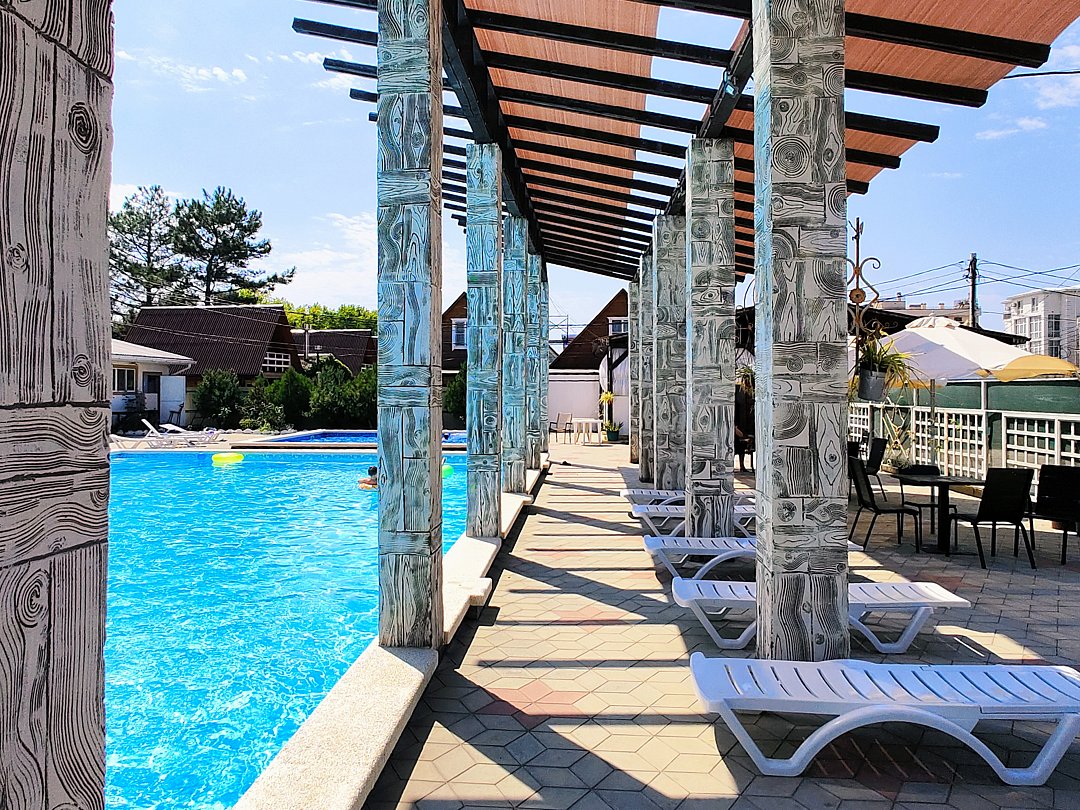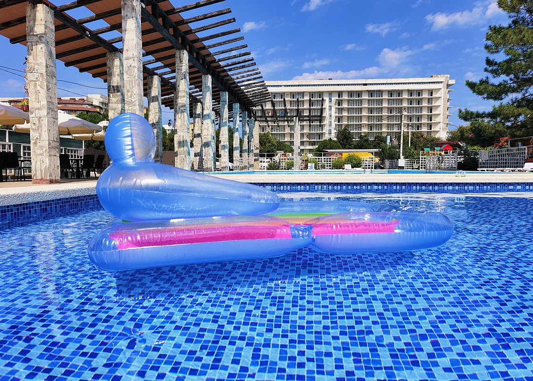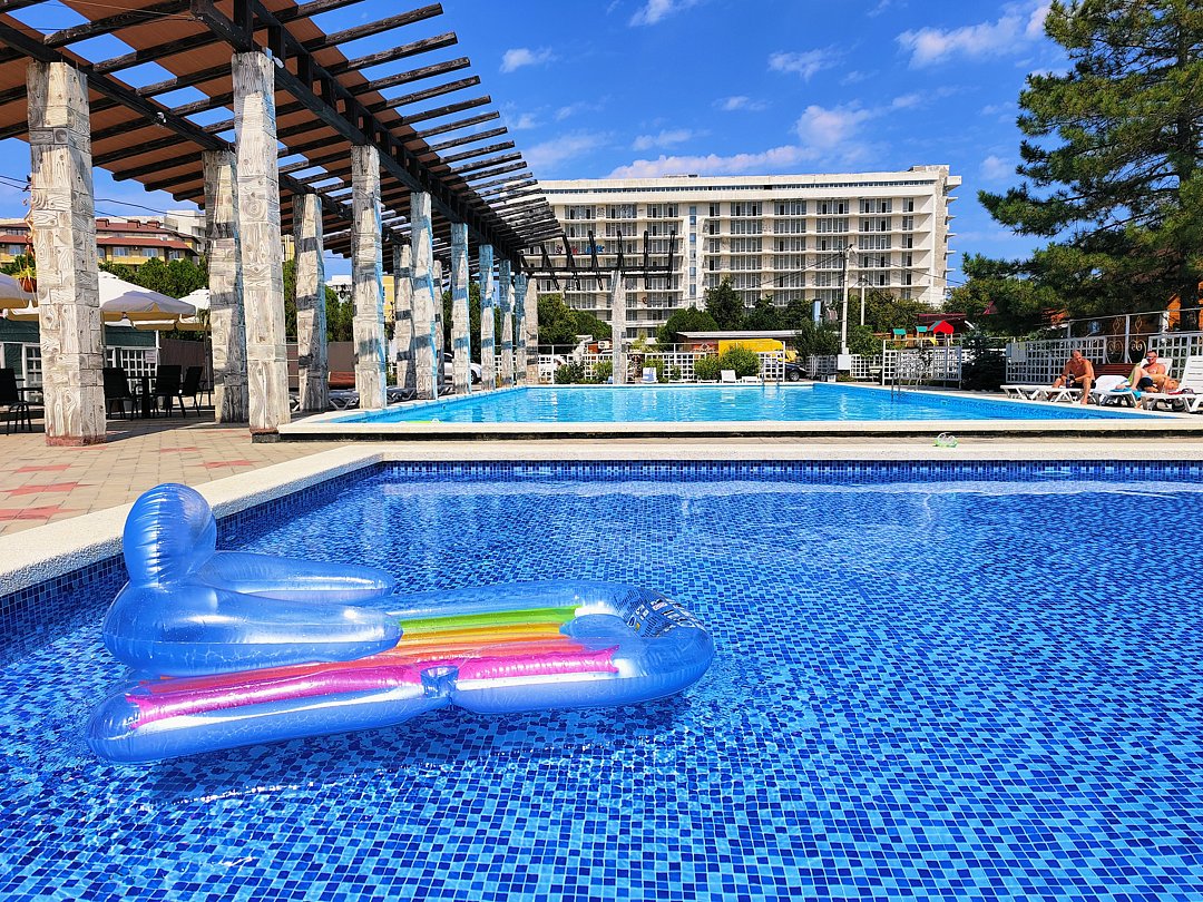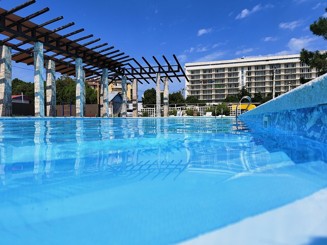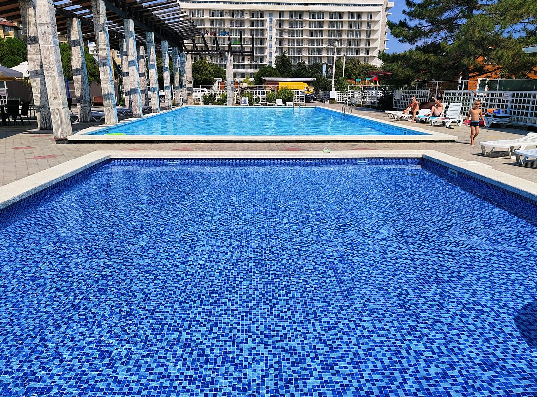 Тип бассейна: открытый бассейнРядом с бассейном: зонтикиРазмеры: 25 x 15 мПериод работы: летний сезонПросторный взрослый бассейн. Гостям доступен с 7:00 до 23:00.