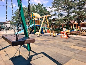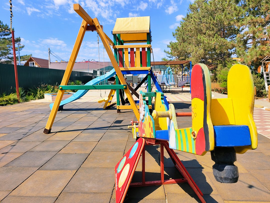 На территории есть яркая детская площадка, где малыши найдут развлечения на любой вкус.
