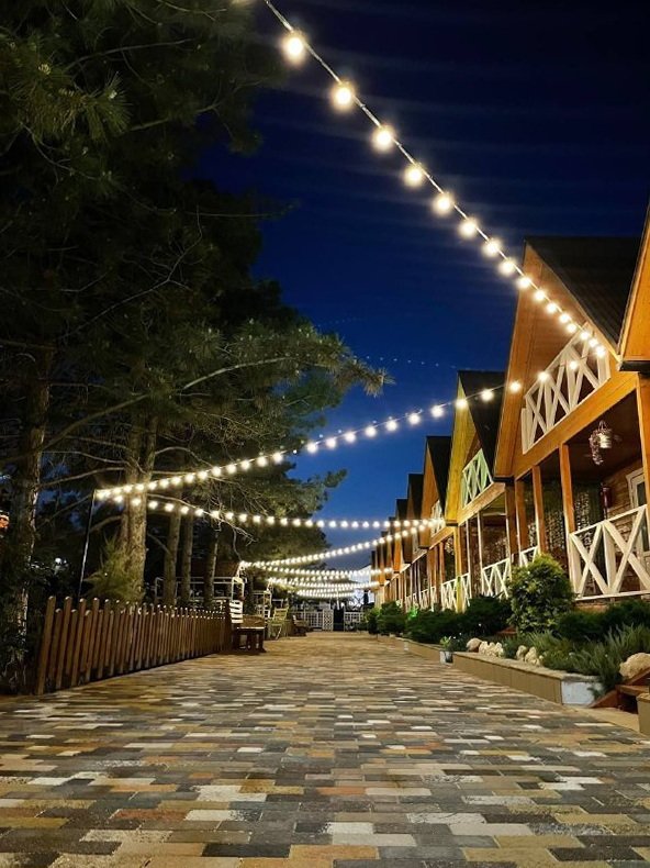 К вашим услугам два бассейна – просторный взрослый и безопасный детский, тенистая парковая зона с вековыми соснами и уютными прогулочными дорожками, зона барбекю со стильными беседками для отдыха и семейных праздников, яркая детская площадка, столовая и бар.
