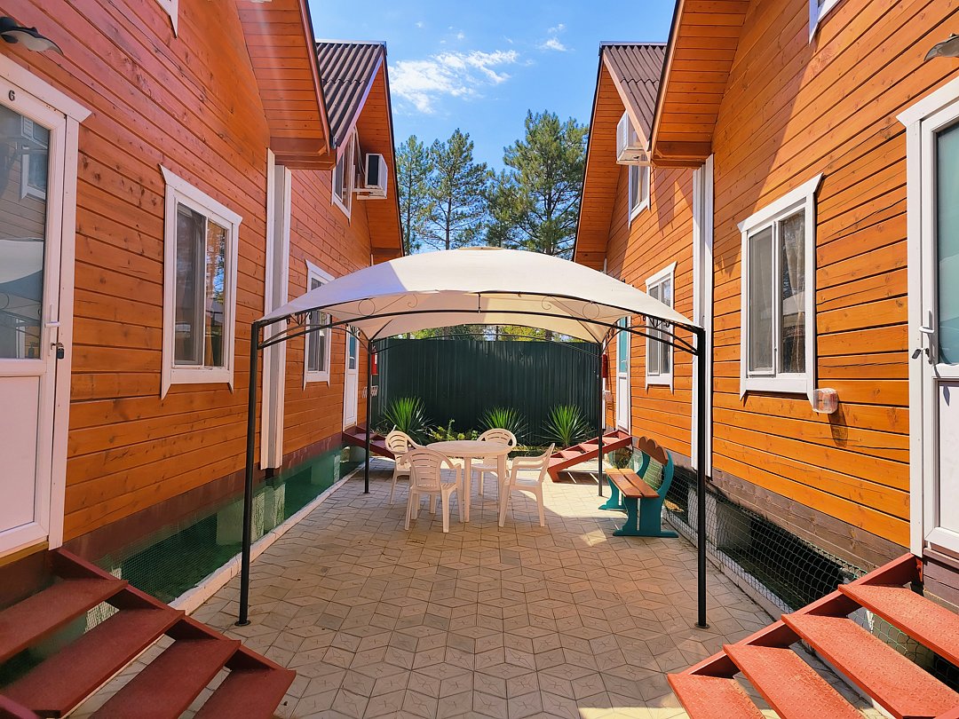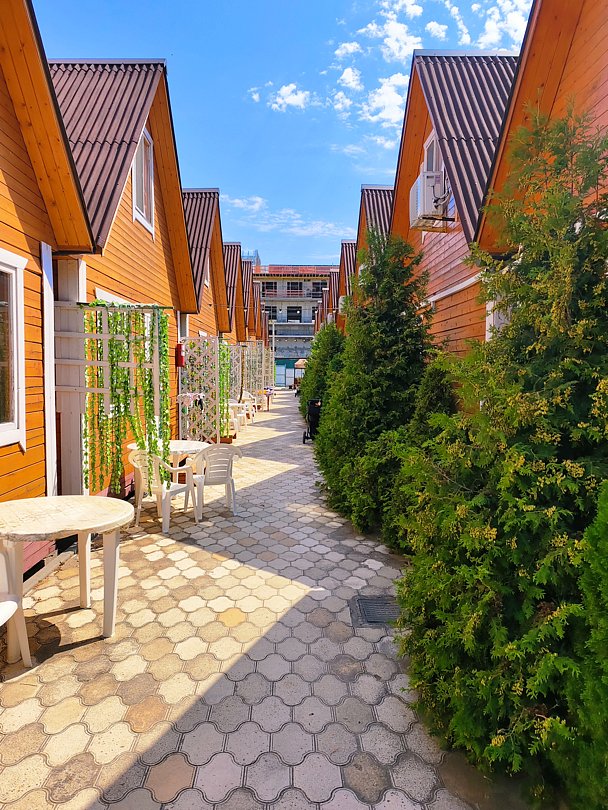 База отдыха «Морская дача Арабеска» предлагает незабываемый отпуск на первой береговой линии в экологически чистых домиках из натурального бруса.