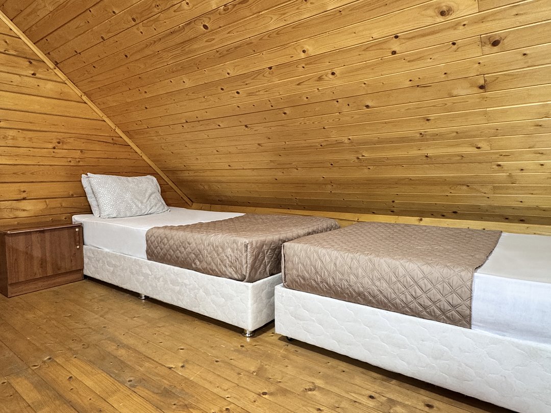 Второй этаж: две 1-сп кровати, тумбочки, санузел.