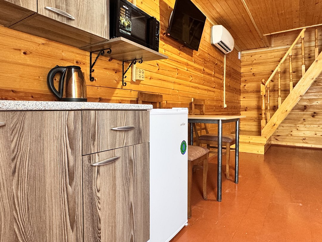 Первый этаж: 2-сп диван-кровать, кухня (посуда, эл. чайник, микроволновая печь, холодильник), ЖК-телевизор, сплит-система, санузел и душевая.