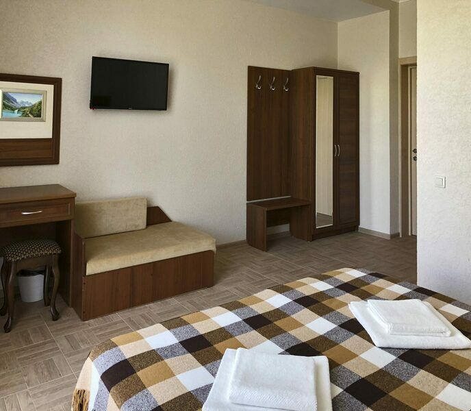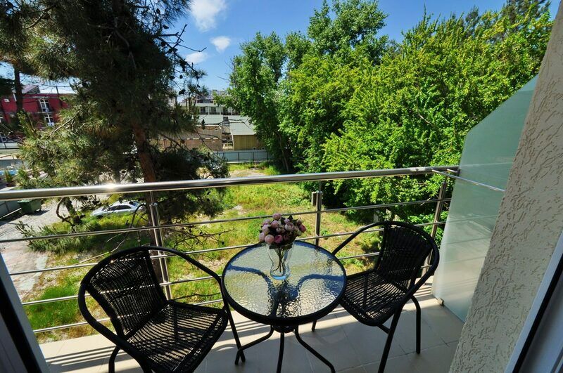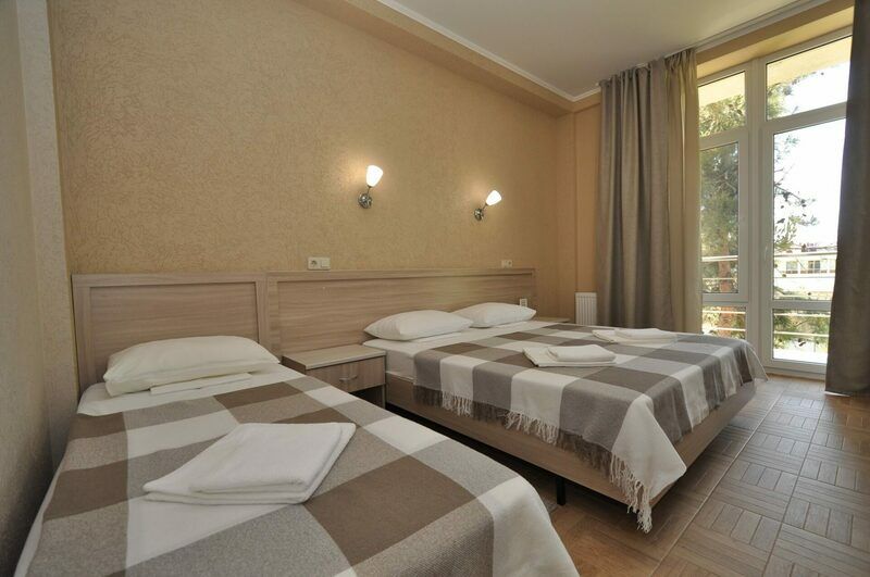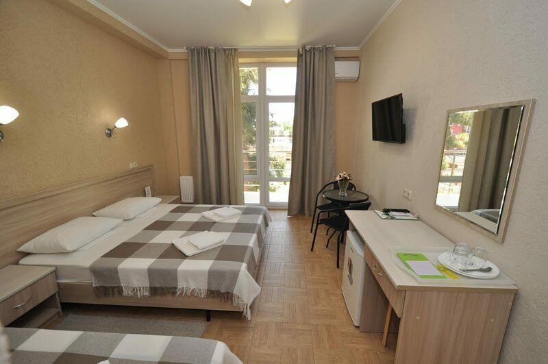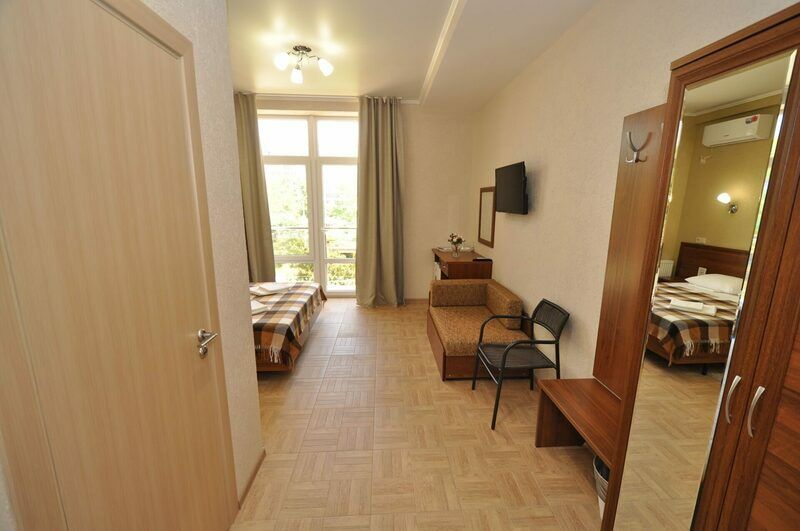 Самолетом до аэропорта г. Анапа, далее на маршрутном такси №113 до остановки «Аквапарк», далее на маршрутном такси №114 до остановки «Прометей», далее пройти пешком 430 м до отеля.