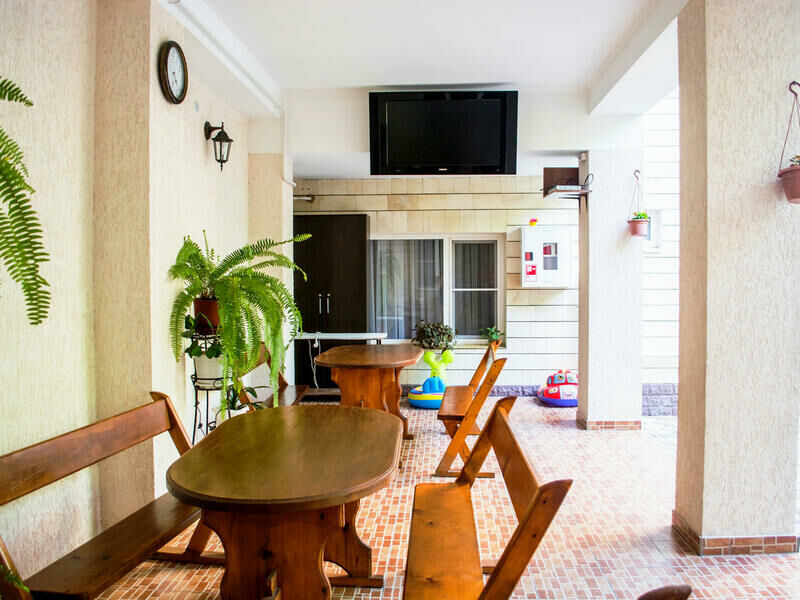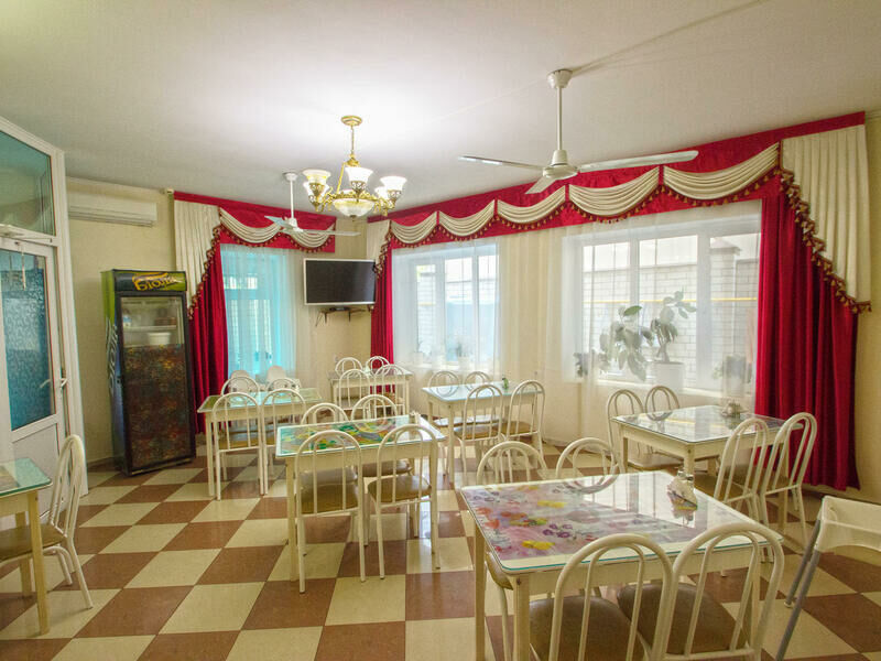 Для удобства отдыхающих на первом этаже первого корпуса организовано питание в собственной столовой. Во втором корпусе на первом этаже кухня и столовая для самостоятельного приготовления. Желающие поесть домашний шашлык с вином могут приготовить это блюдо на специально построенном для этого барбекю.