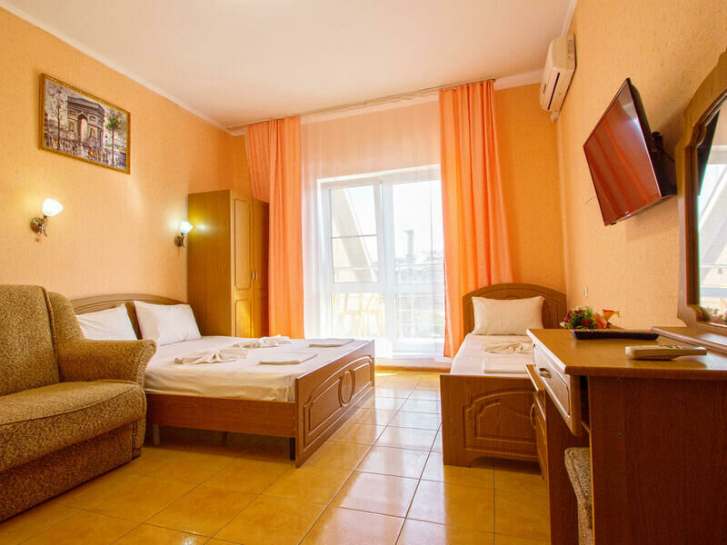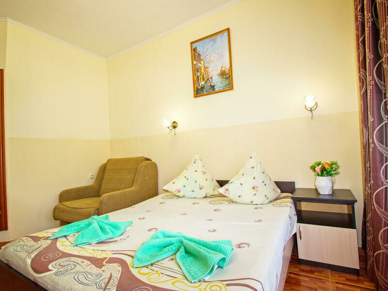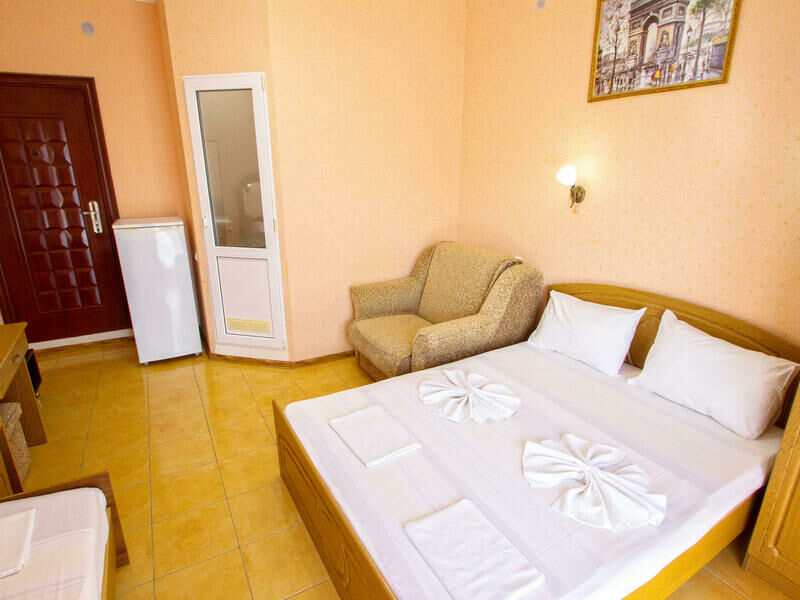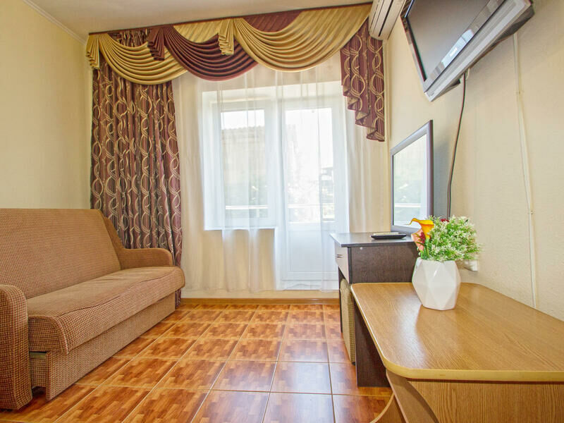 Все номера оснащены душем, туалетом, умывальником, телевизором, холодильником, сплит-системой, личным балконом и набором мебели: кровати, шкаф, кресло, дамский столик с пуфиком, тумбочки, набор посуды, на балконе - стол со стульями.