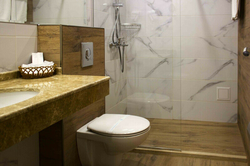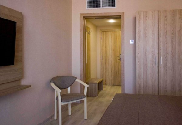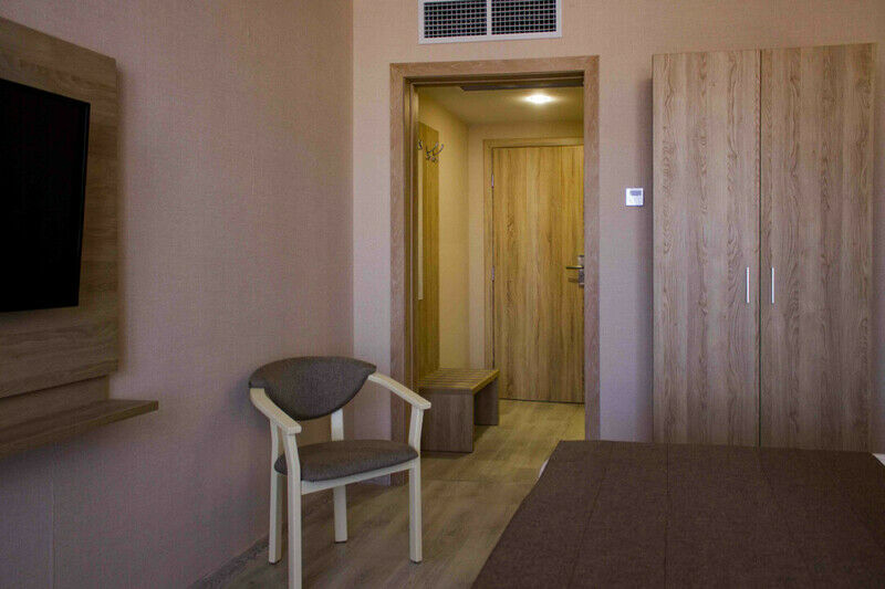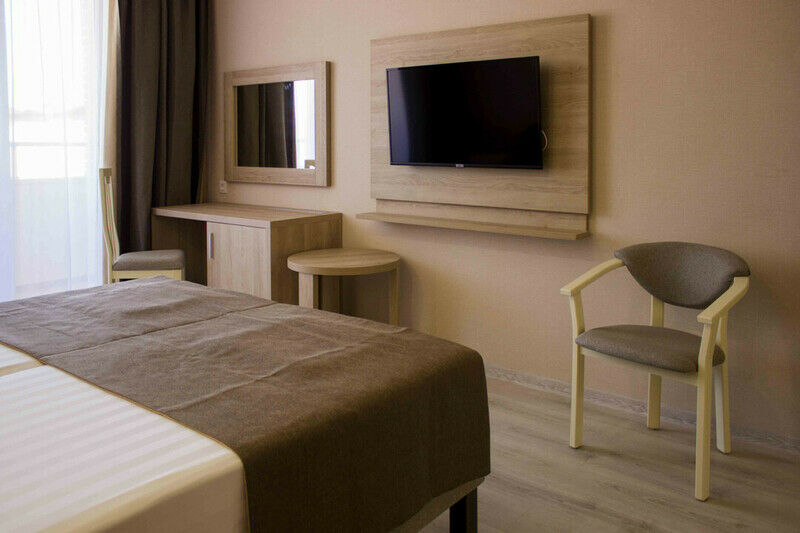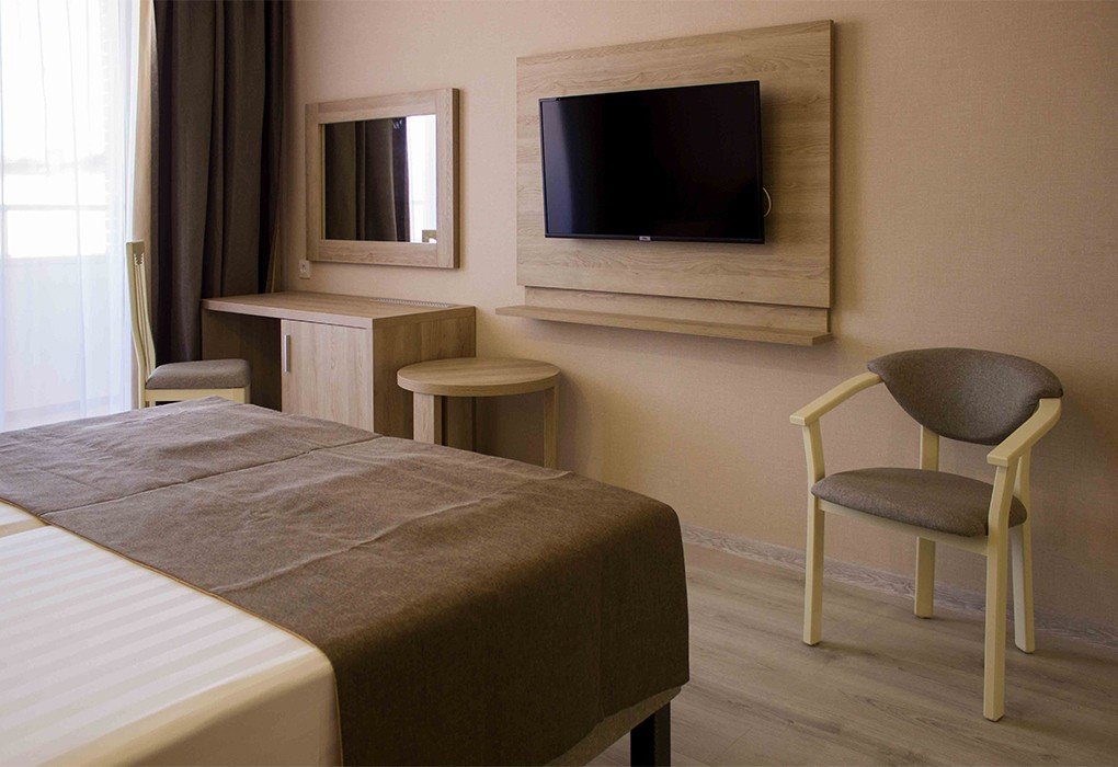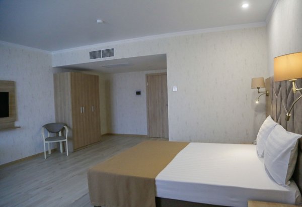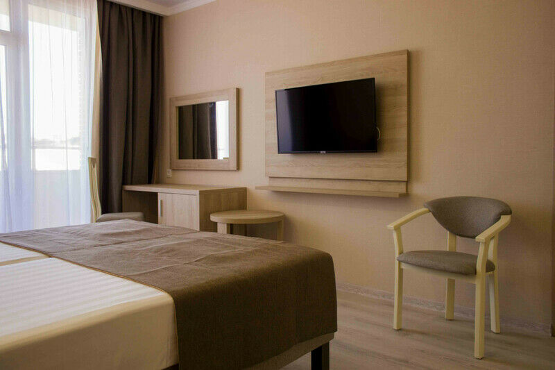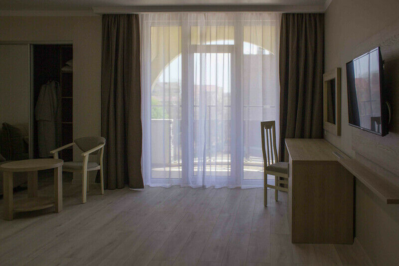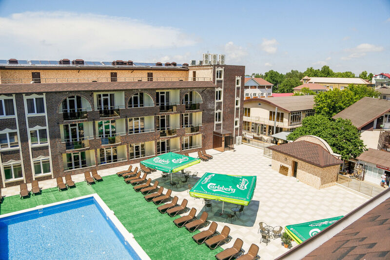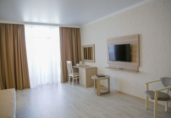 Трехэтажный корпус отеля разместился на благоустроенной закрытой территории. Гостей ожидают номера разной категории — от Стандарта до Джуниор Сьюта и двухкомнатного Супер Люкса. Во всех номерах стильный современный интерьер, выдержанный в приятной гамме с использованием пастельных оттенков, индивидуальный санузел, сплит-система и вся необходимая бытовая техника.