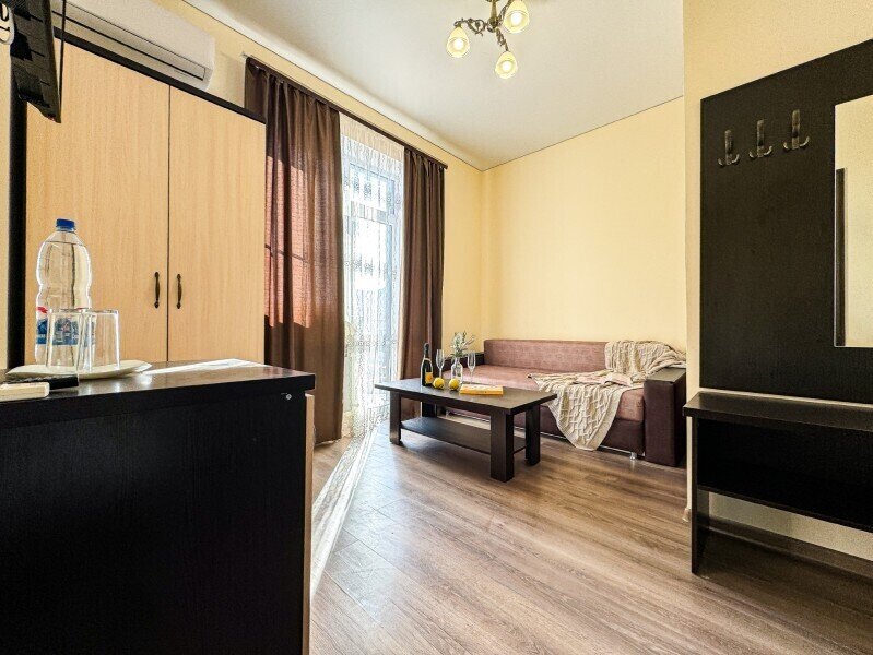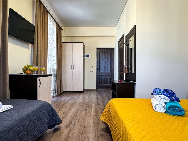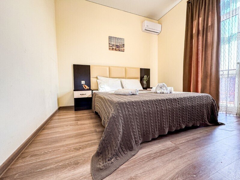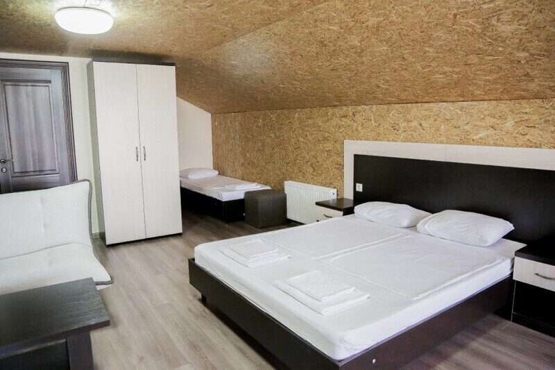 В современном доме гости будут чувствовать себя уютно. Недавно производился ремонт, поэтому вся мебель новая и чистая. В некоторых номерах есть балкон. В каждом помещении свой санузел, душ, кондиционер, ЖК-телевизор.