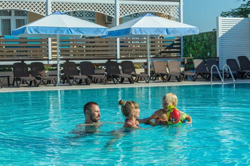 Тип бассейна: открытый бассейн, детский бассейнВода в бассейне: подогреваемый бассейнРядом с бассейном: шезлонги, зонтикиВремя работы: от 08:00 до 19:00Стоимость