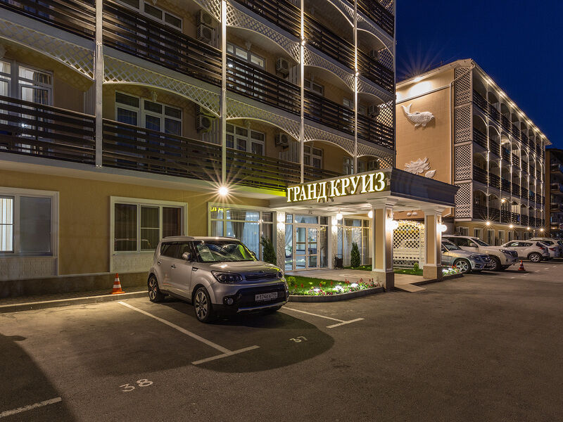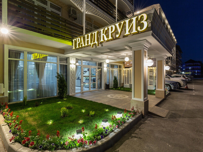 «Гранд круиз» - отель три звезды. Расположен он в пригороде Анапы, в Джемете. До центра города 5 км. Около отеля находятся достопримечательности этого поселка: дельфинарий, аквапарк, рестораны, кафе, магазины, рынки. До моря 300 метров. Территория отеля благоустроена. На ней расположено сразу четыре здания, каждое из которых состоит из четырех этажей. В них могут одновременно разместиться 440 человек. Номера в отеле разной категории: люкс, эконом. Но все они очень просторные и хорошо меблированы. Они обязательно оборудованы автономным санузлом с душем или ванной. Каждый оснащен всей необходимой для комфортного проживания техникой. В большинстве номеров имеются балконы.