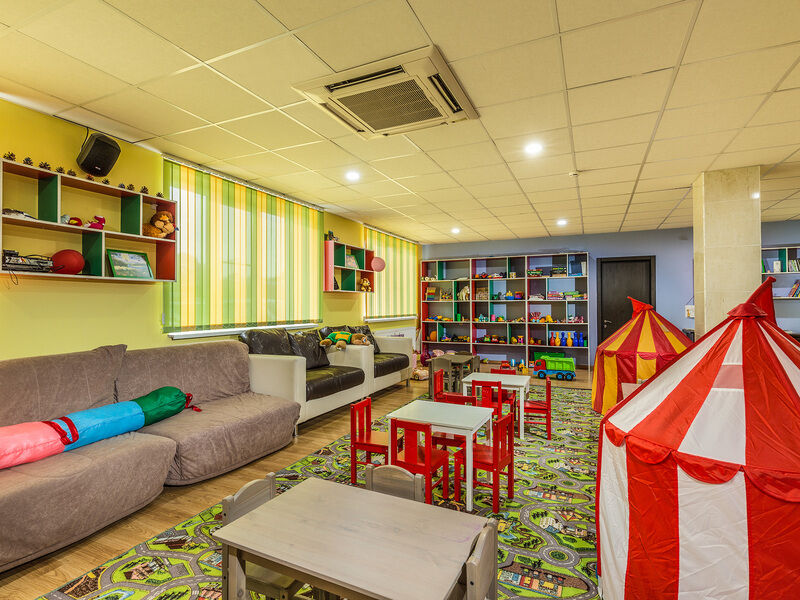 Для своих гостей отель предлагает родителям с маленькими детьми воспользоваться услугой «Тихий час» в детской комнате,под присмотром няни-воспитателя.