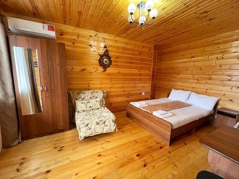 Двуспальная кровать + кресло-кровать, с/у, душ, ТВ.