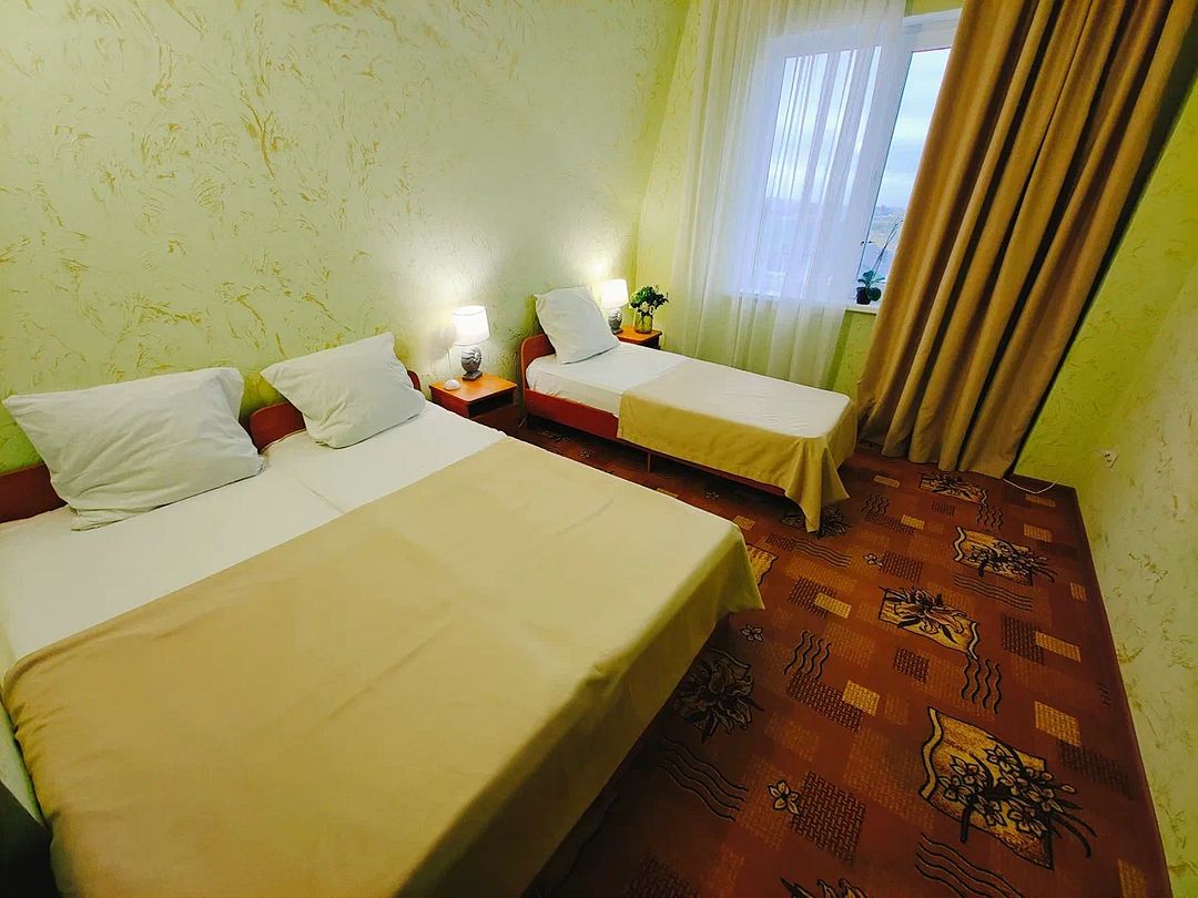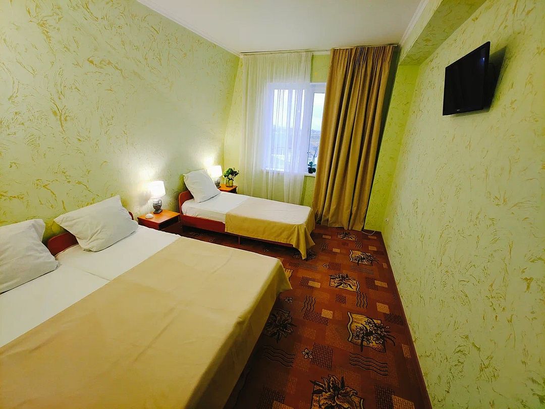 Уютная атмосфера для семьи или компании подруг, коллег. 3-х местный «Стандарт». 4 этаж. Светлый просторный номер. На этаже общие большие балконы. С видом на бассейн или с видом на море.