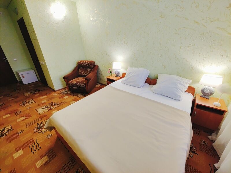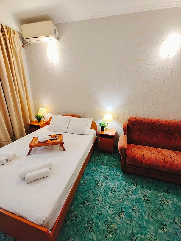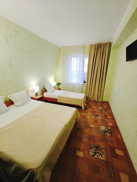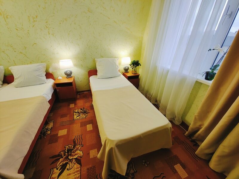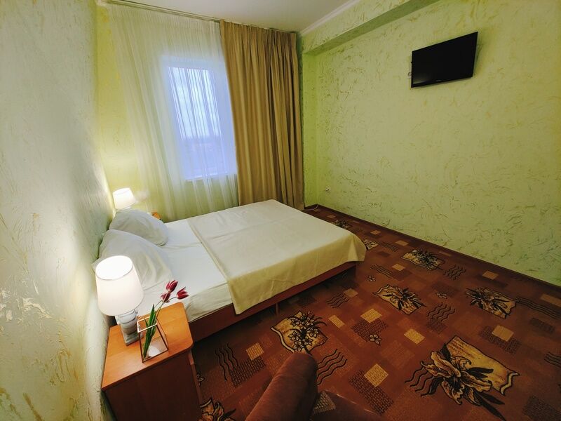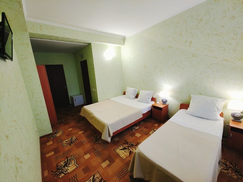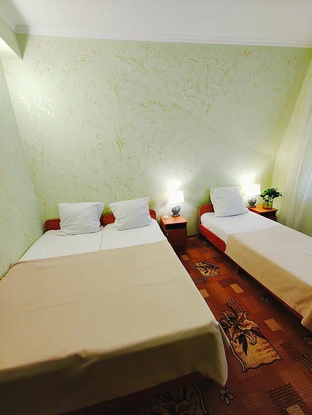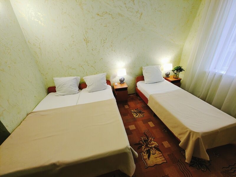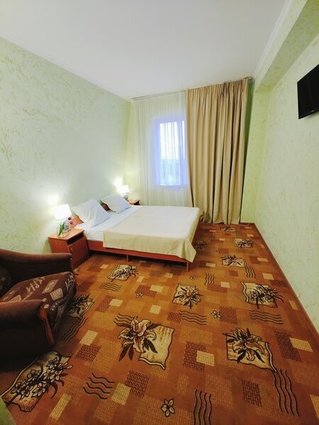 Одна комната. Два окна. Двуспальная кровать. Либо две раздельные односпальные кровати. Можно сдвинуть. Дополнительное место не предусмотрено. Мини-шкаф. Телевизор, холодильник, кондиционер, wi-fi. Санузел (душ, туалет в номере). Фен по запросу.