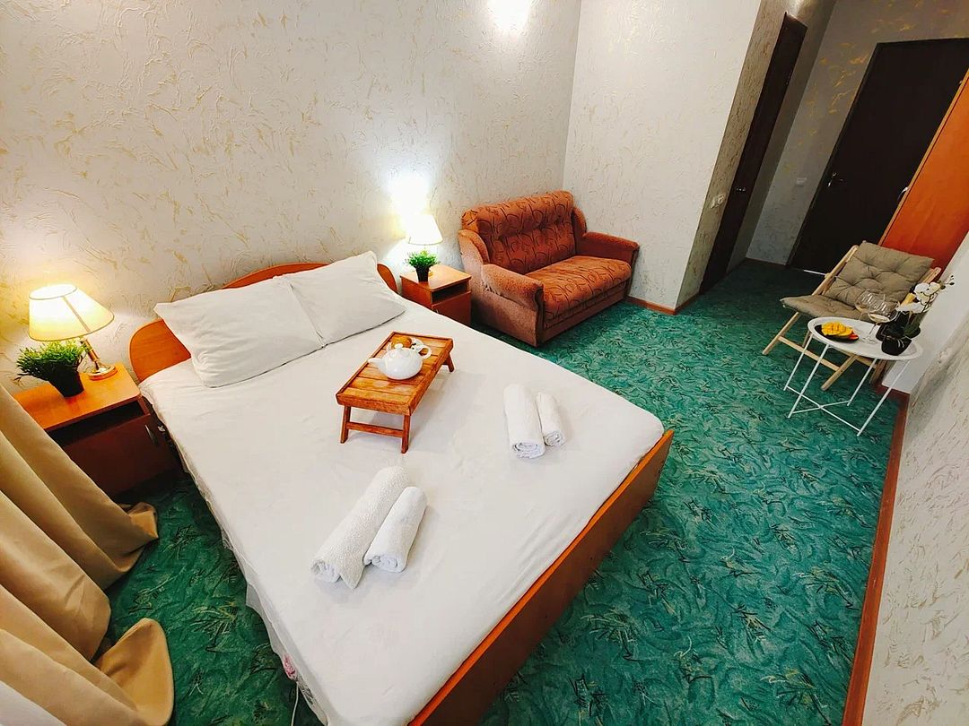 Для проживания доступны: просторные номера категорий «Стандарт» и «Комфорт» (рассчитаны на 2–5 человек) и Семейные номера 3-х комнатные с кухней до 6 гостей.