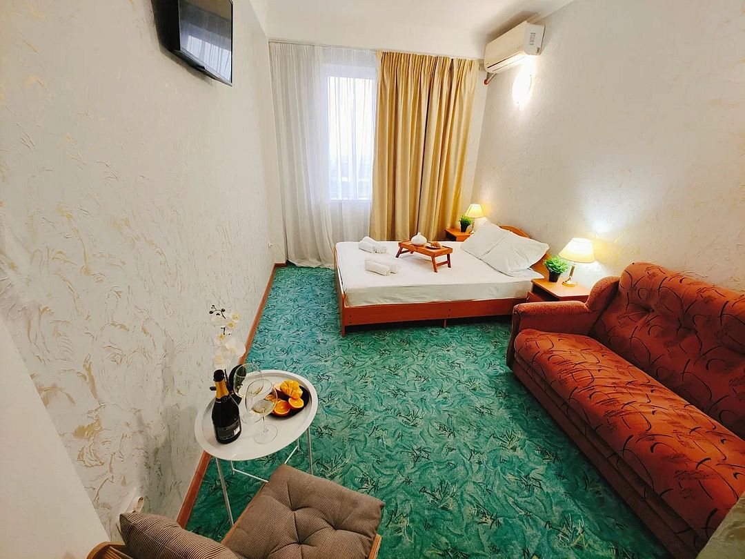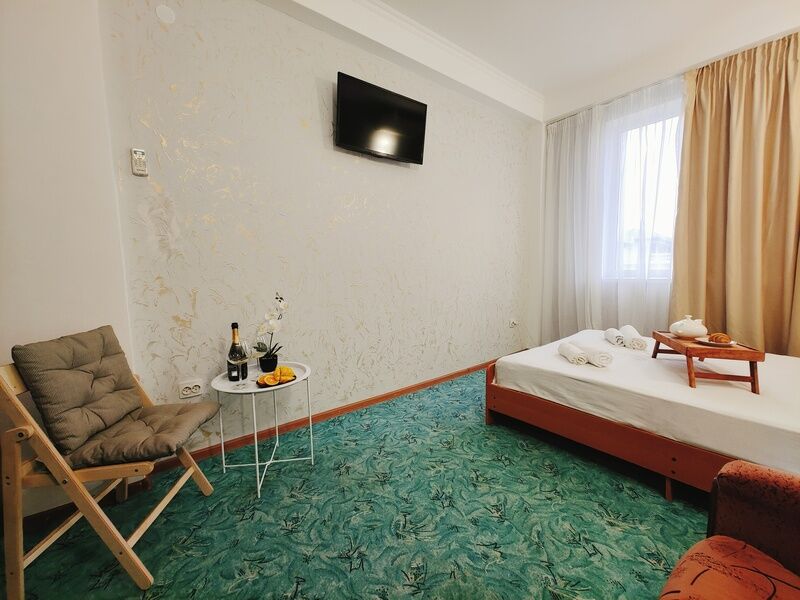 Вместительный шкаф. Телевизор, холодильник, кондиционер, wi-fi. Санузел (душ, туалет в номере). Фен по запросу.