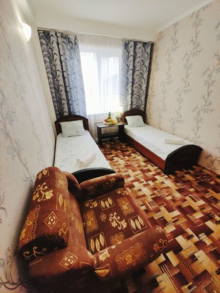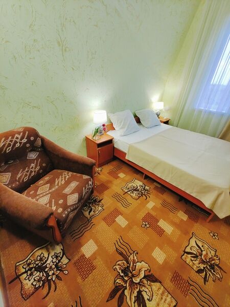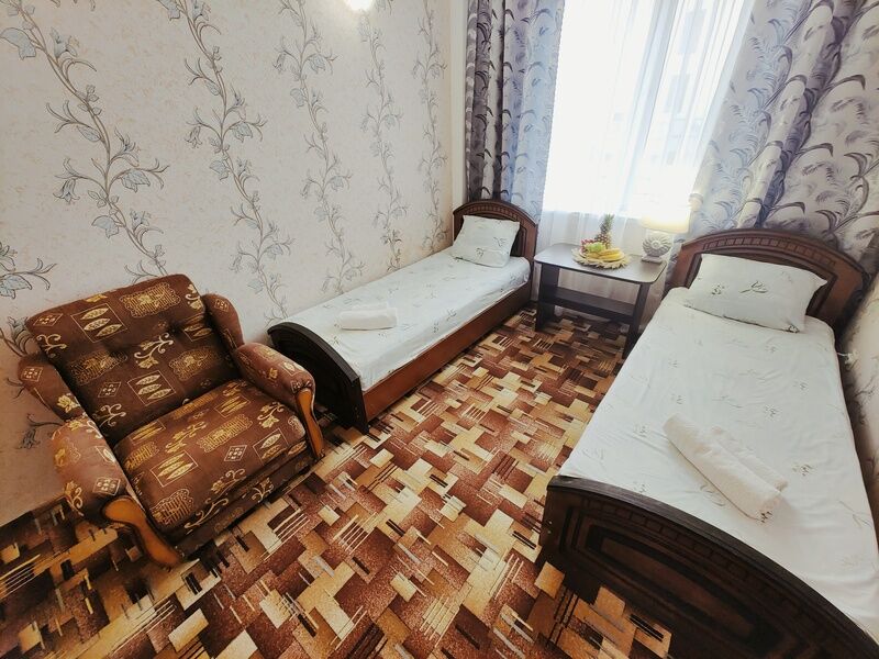 Один номер — две односпальные кровати, и кресло-кровать, для подростка до 12 лет.