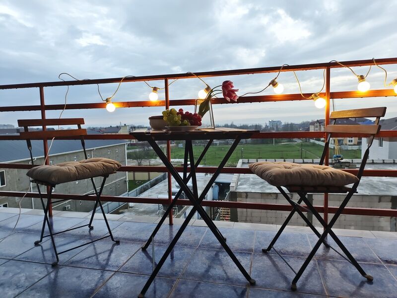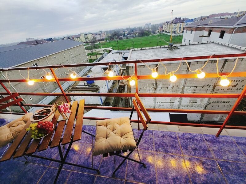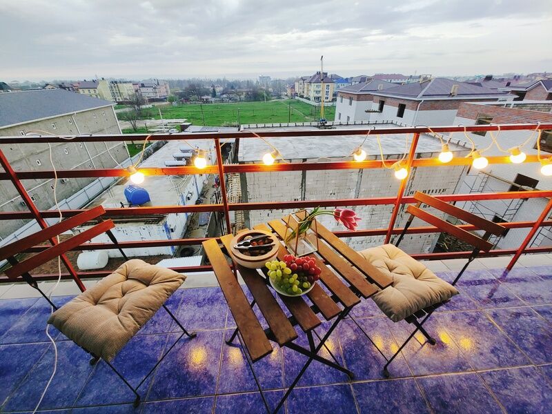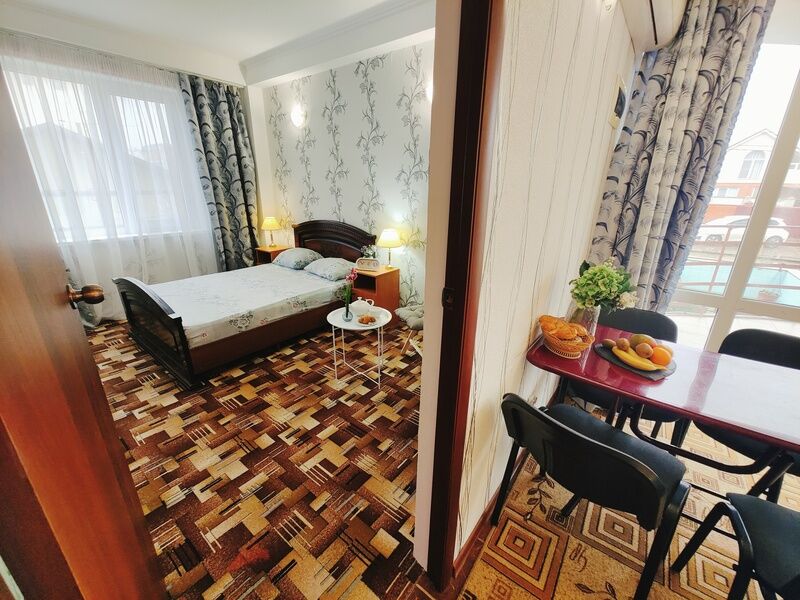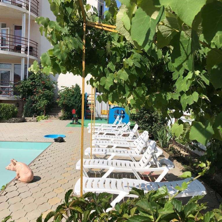 Полная оснащенность номеров: удобные кровати, кондиционер, холодильник, телевизор, шкаф для одежды, посуда, Wi-Fi. Сан — узел в номере! Общие балконы на верхних этажах и террасы в номерах с кухней на первом этаже – место для вечерних посиделок и утреннего кофе.