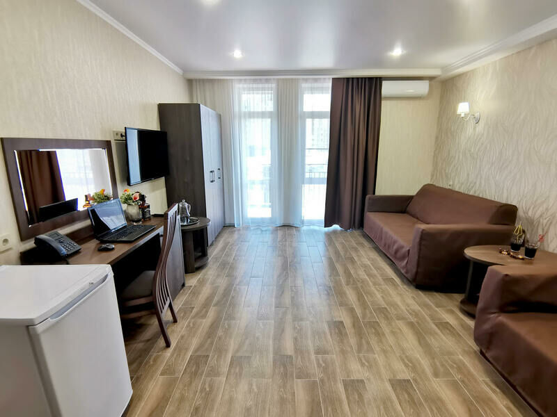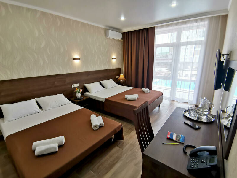 Отель Palma Soneta расположен в Анапе, в нескольких шагах от пляжа Джемете. К услугам гостей терраса, частная парковка, детская игровая площадка, открытый бассейн и бесплатный Wi-Fi на всей территории. Осуществляется доставка еды и напитков в номер. Сотрудники круглосуточной стойки регистрации всегда рады помочь гостям.