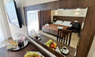 Путешествие с семьейИдеальный отель!! Самый безупречный во всех смыслах! Чистота и покой!Замечательная гостиница! Все понравилось. Начиная с входа в гостиницу уже понятно, что в ней есть установленные правила и это помогает держать дисциплину, а в итоге чистоту и порядок. Везде надпись, что курить можно в строго отведенных местах, что прежде чем войти нужно промыть обувь от песка, при этом установлена специальная колонка, которую постоянно моют. Отмечу, что на протяжении всего отдыха я наблюдала, что весь персонал постоянно что то намывает, от пола до каждого предмета и детали в гостинице, даже хромированный забор на территории бассейна блестел от чистоты и на нем не было ни единого развода..) войдя в номер, чувствуется запах чистоты, а постельные принадлежности и полотенца пахли лавандой. Для меня чистота в отелях это самый главный показатель, это очень важно понимать, что за здоровье отдыхающих администрация отеля заботиться. Мебель , сантехника и ремонт в номерах идеальный. Не увидела ни одной царапины. Очень приятно отдыхать в чистой и спокойной обстановке. На балконе разрешено курить, для удобства предусмотрены даже специальные пепельницы, которые прикреплены к рамам на балконе. Звукоизоляция отличная, никого не слышно, что очень важный момент. А какая столовая на территории, разнообразие блюд, которые почти не повторялись, ооочень вкусные! Бассейн и территория вокруг, лежаки все грамотно расставлено, места всегда есть. Лежаки деревянные, чистые и с анатомической формой. Я не нашла ни одного минуса ! Идеальный отель-гостиница! Однозначно вернулись бы ! Спасибо большое за гостеприимство 🧡