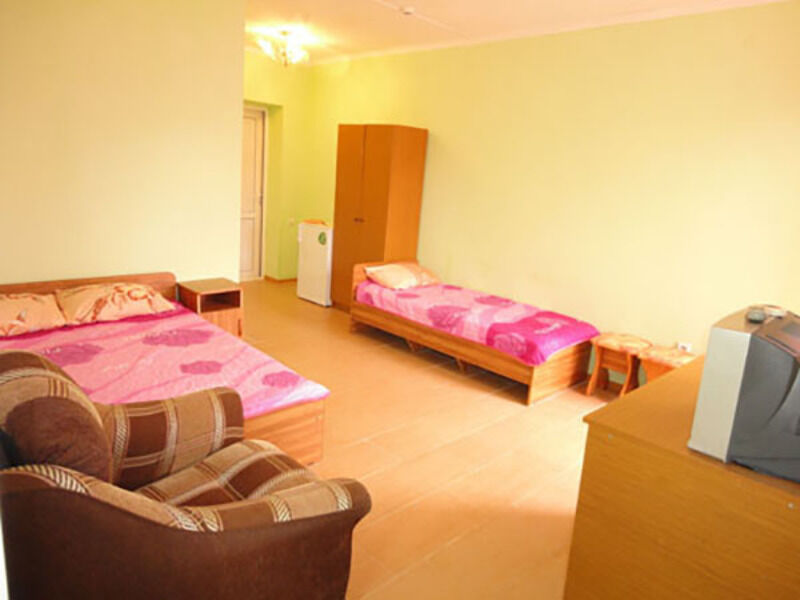 На огороженной, недоступной для посторонних территории гостевого дома, ухоженной и озелененной, находится пять жилых корпусов, насчитывающих 73 номера категории «стандарт» с разным количеством мест и комнат. Все номера гостевого дома обеспечены отдельным санузлом с душем и туалетными принадлежностями. В каждом из них есть необходимая бытовая техника: сплит-система, холодильник и телевизор. Wi-Fi доступен на территории.