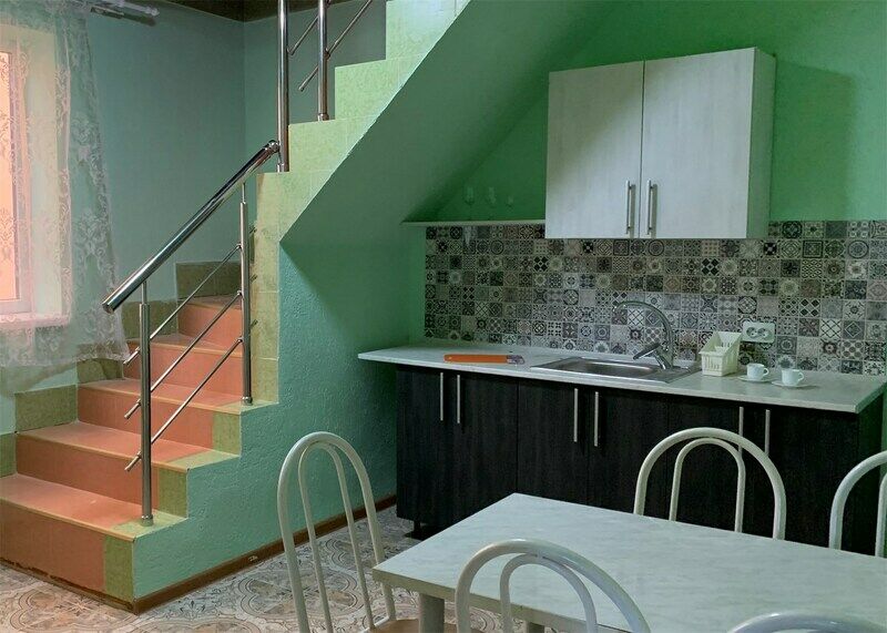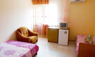 Питание гостей организовано в столовой гостевого дома. В зале выставлены высокие стульчики для кормления малышей. Кроме столовой, в гостевом доме работает летнее кафе.