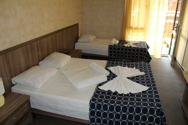 Поездом до ж/д вокзала г. Анапа, далее пройти пешком 460 м до остановки «Вокзал Анапа», далее на маршрутном такси №120 до остановки «Аквапарк», далее пройти пешком 520 м до отеля.
