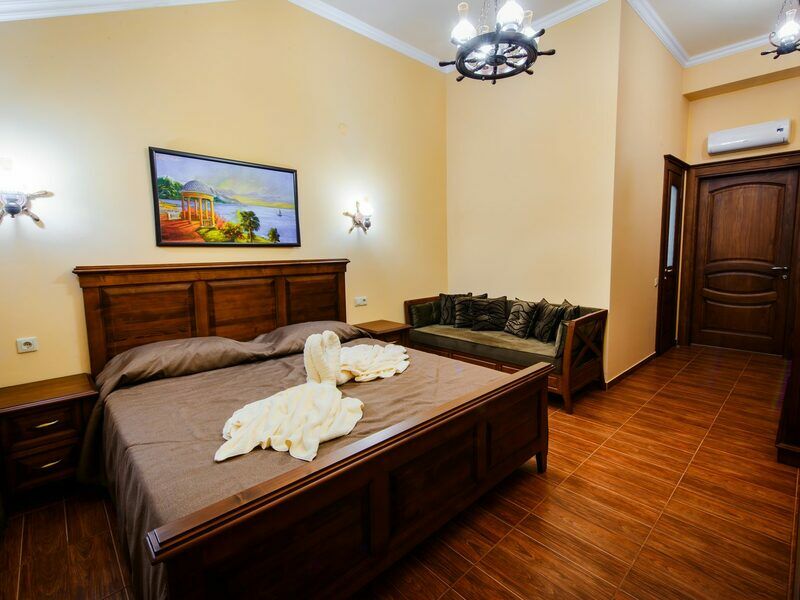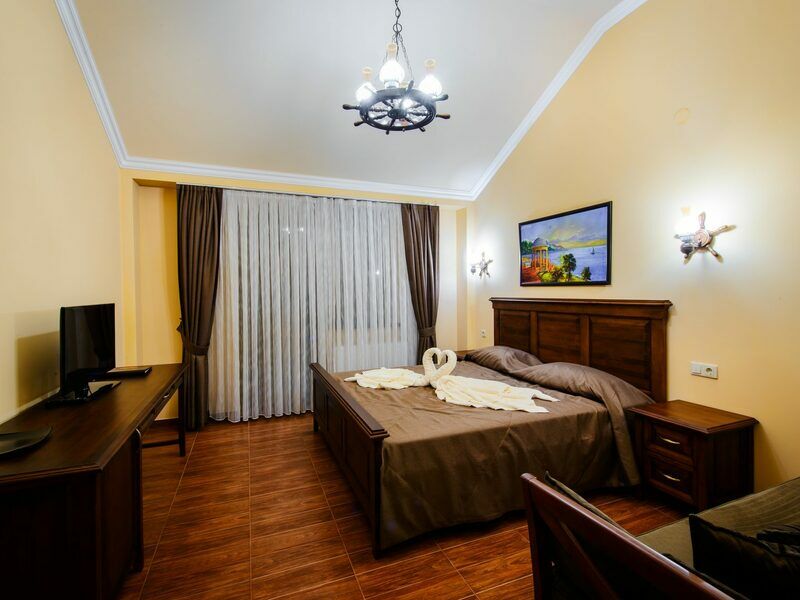 Корпус отеля состоит из 3-ех этажей с лифтом. Гостевой дом исполнен в стиле европейского шале, напоминает альпийские гостиницы Франции и Германии. Жилой фонд рассчитан на 95 отдыхающих. Номерной фонд предлагает номера категории Стандарт и Полулюкс. Все номера хорошо меблированы и оборудованы необходимой бытовой техникой, есть ванная комната с душем и набором косметических принадлежностей, имеется wi-fi.