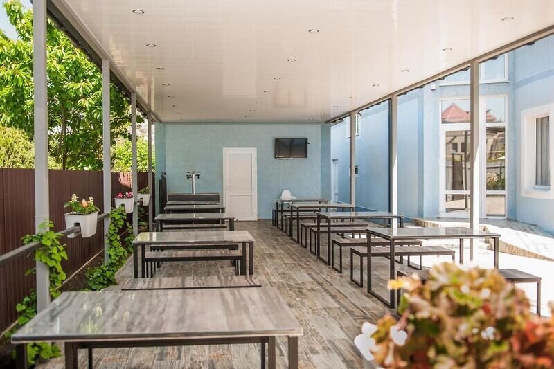 На территории гостевого дома для гостей предусмотрены: интернет Wi-Fi, уборка номера по требованию, детская игровая площадка, детский бассейн, батут, патио (зона отдыха), автомобильная парковка, охватываемая видеонаблюдением, столовая с уютной террасой, услуги стирки и глажки белья, трансфер.