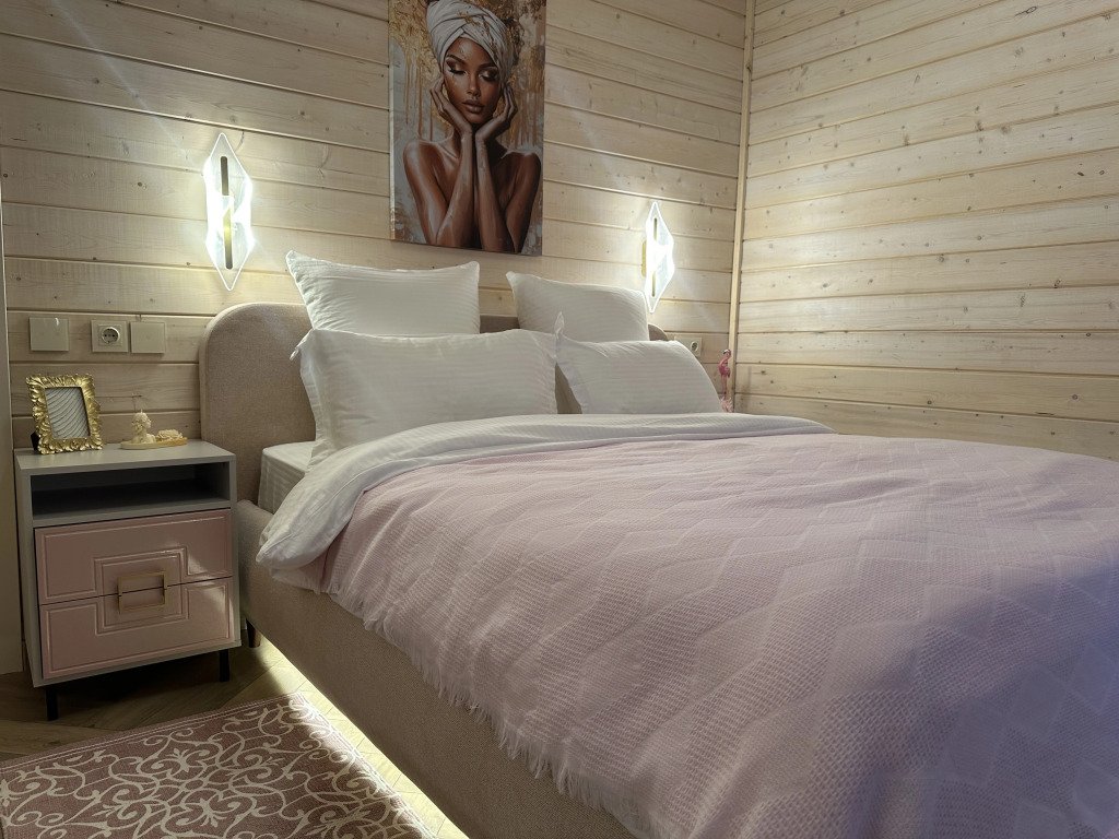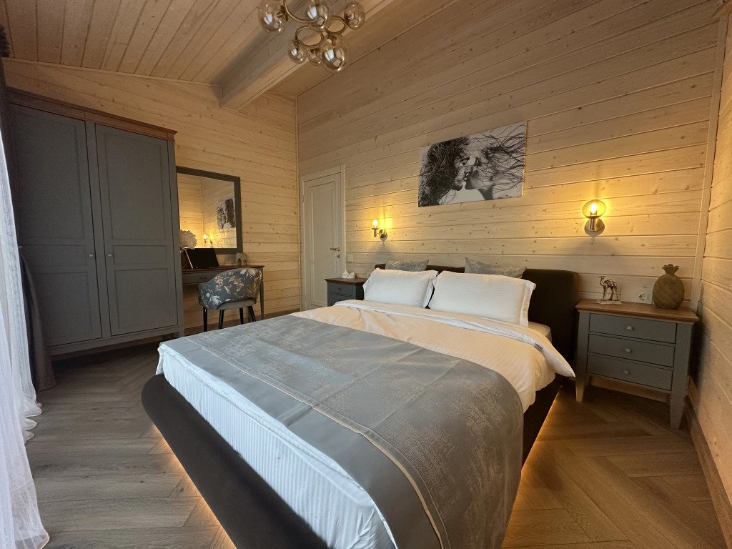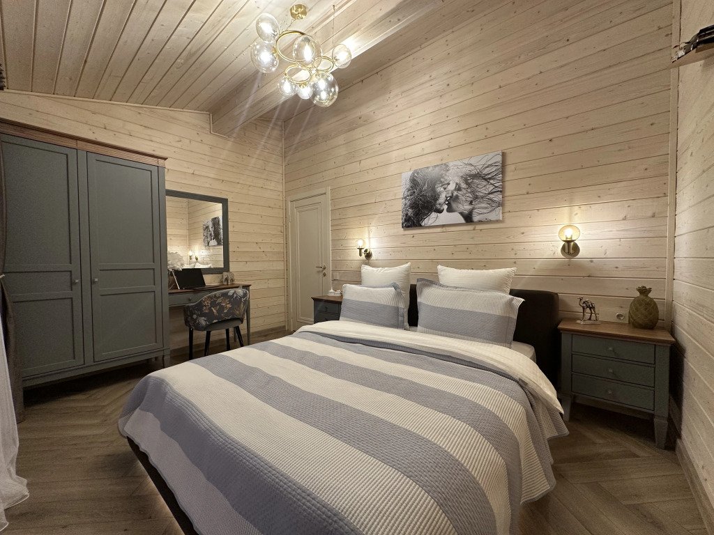В доме имеется: диваны в гостиной, кровати в спальнях, телевизор со Smart TV, блэкаут шторы, постельное бельё, халаты, полотенца и одноразовые зубные щётки с пастой, тапочки, расчёски, а также шампунь, кондиционер, гель для душа, мыло для рук, фен.