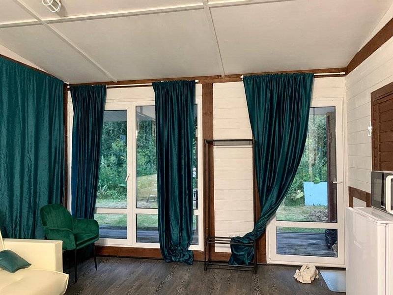 Фахверковый дом до 4 человек с бесплатными - русской баней, купелью фурако и мангальной зоной! Небольшая русская банька прямо внутри дома и входит в стоимость аренды. Купель фурако встроена в веранду дома и тоже входит в стоимость.